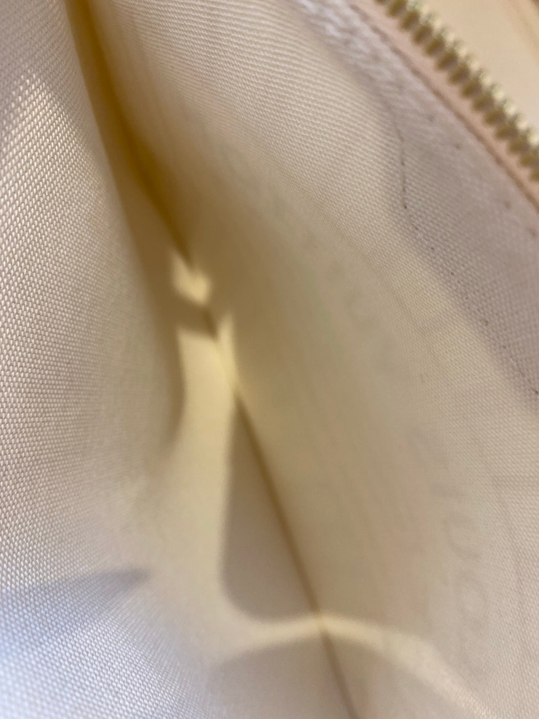 Good: Items show more prominent wear such as noticeable discoloration, stains and snags to fabric. May have worn corners and handles, tarnishing to hardware and creasing to leather. Pen or make up marks may be visible in the interior of the bag.