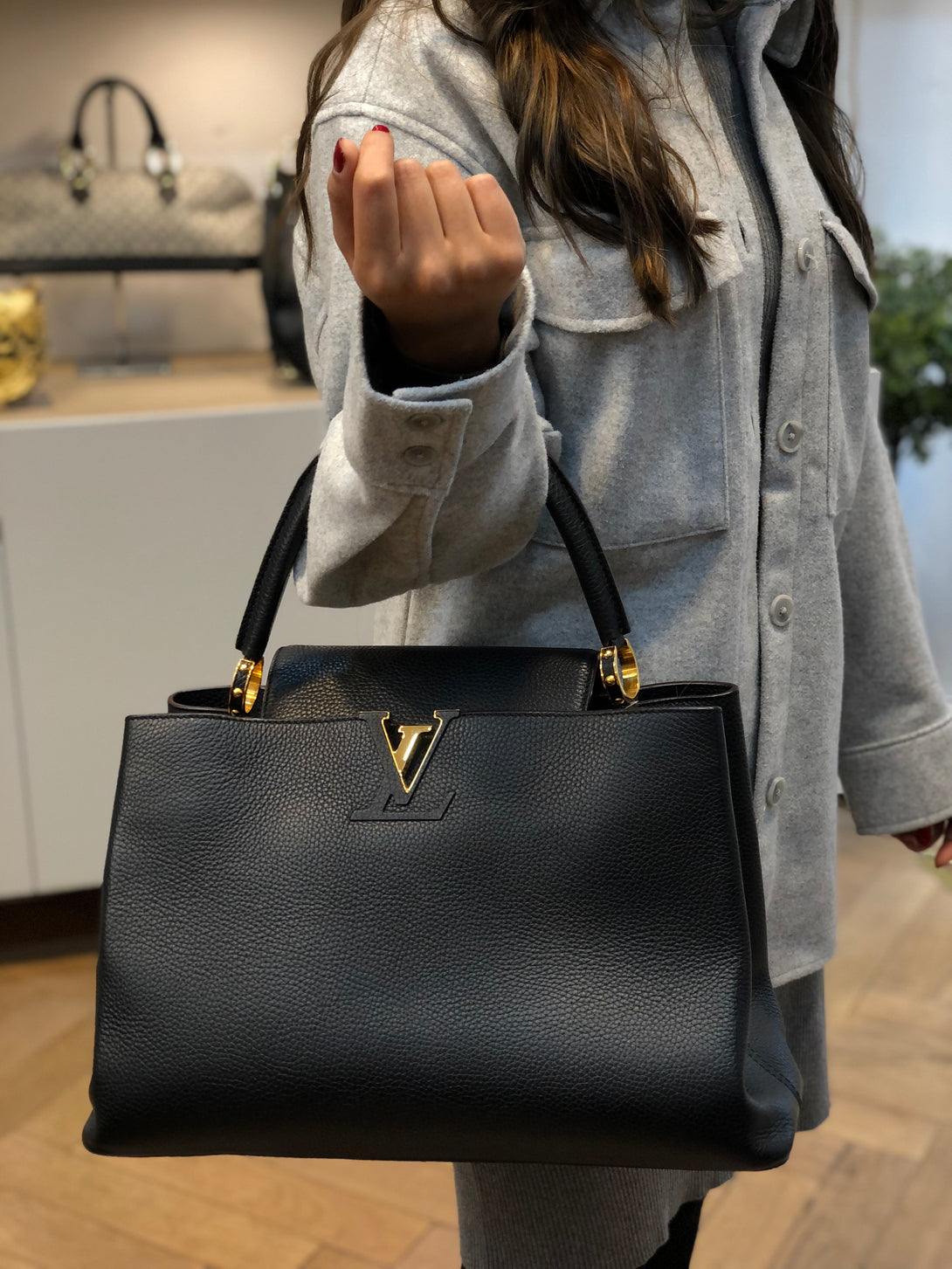 Louis Vuitton Black Calf Leather Sac Capucines GM