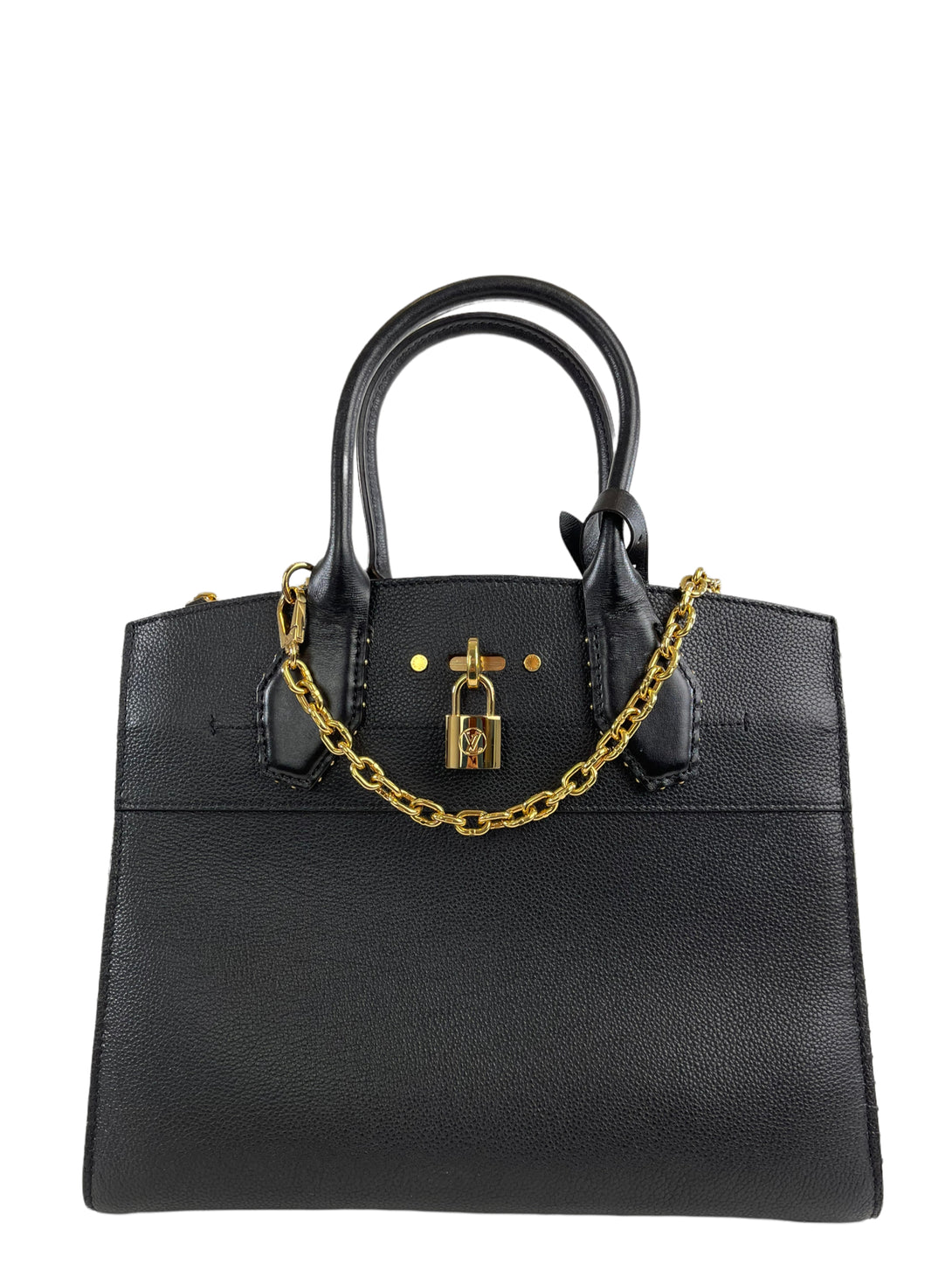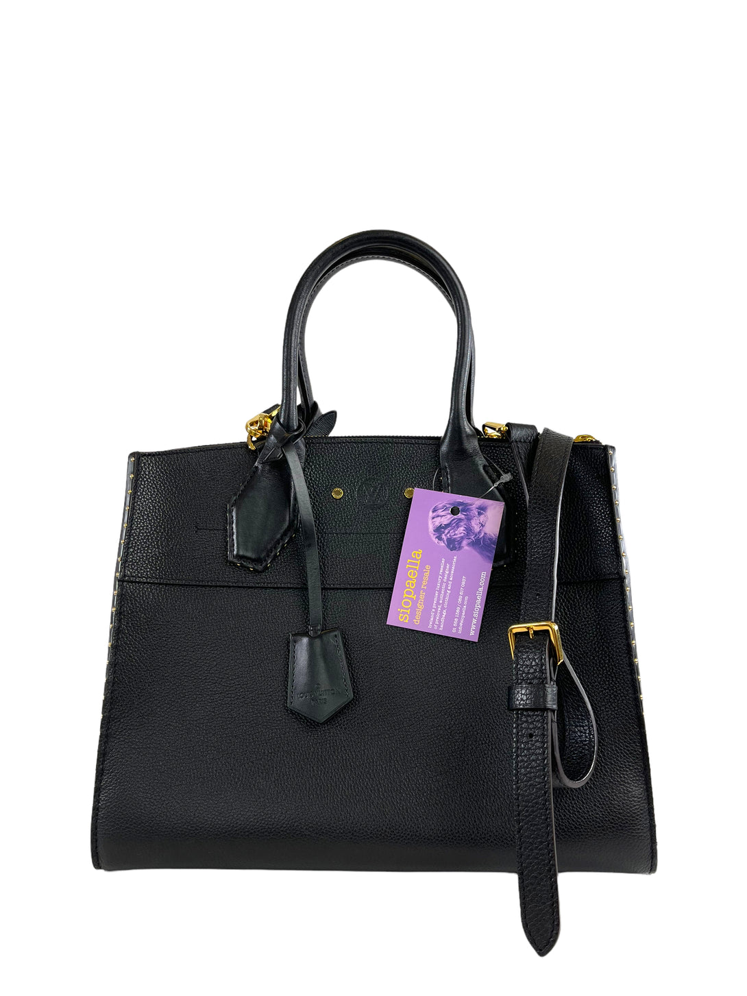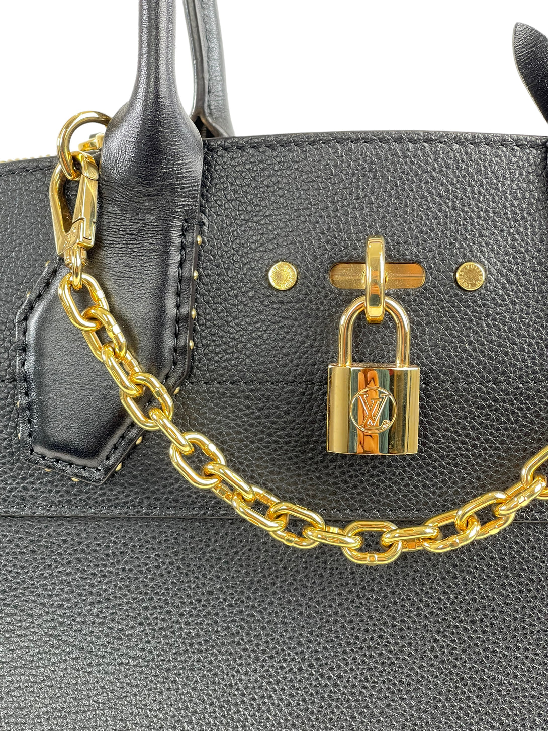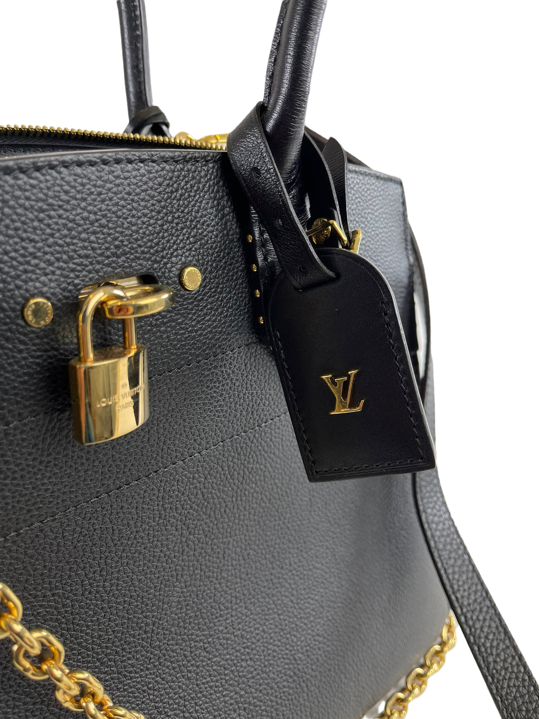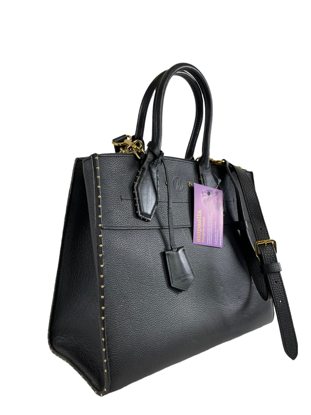Louis Vuitton Black Grained Calfskin City Steamer Tote