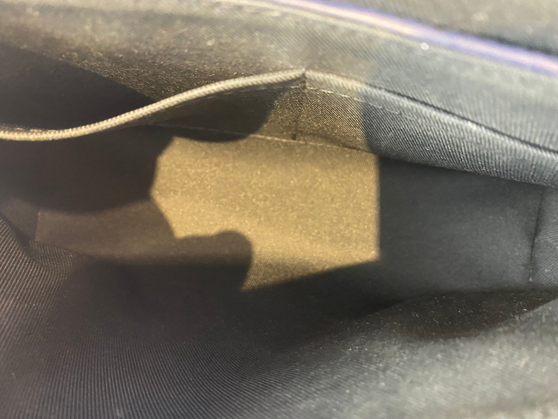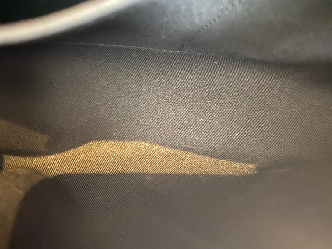 Good: Items show more prominent wear such as noticeable discoloration, stains and snags to fabric. May have worn corners and handles, tarnishing to hardware and creasing to leather. Pen or make up marks may be visible in the interior of the bag.