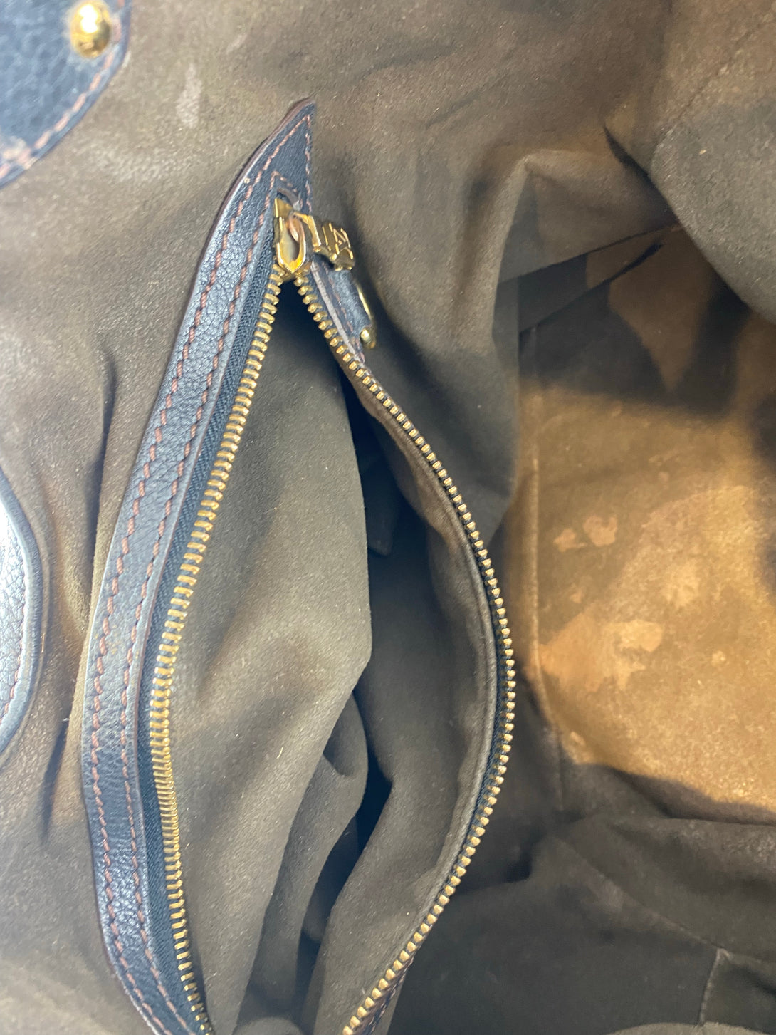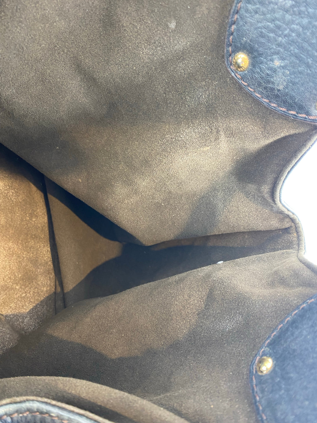 • Overall Condition: Good Pre-Loved Condition - scratches on leather and handles, scuff marks and stains on base of bag as shown