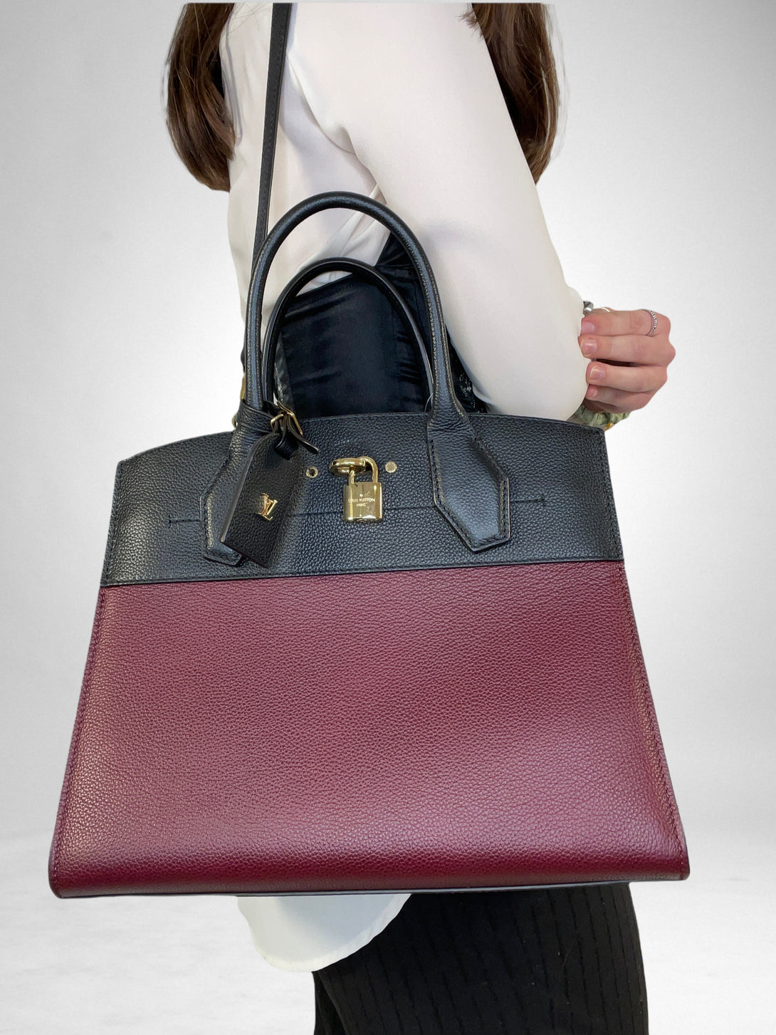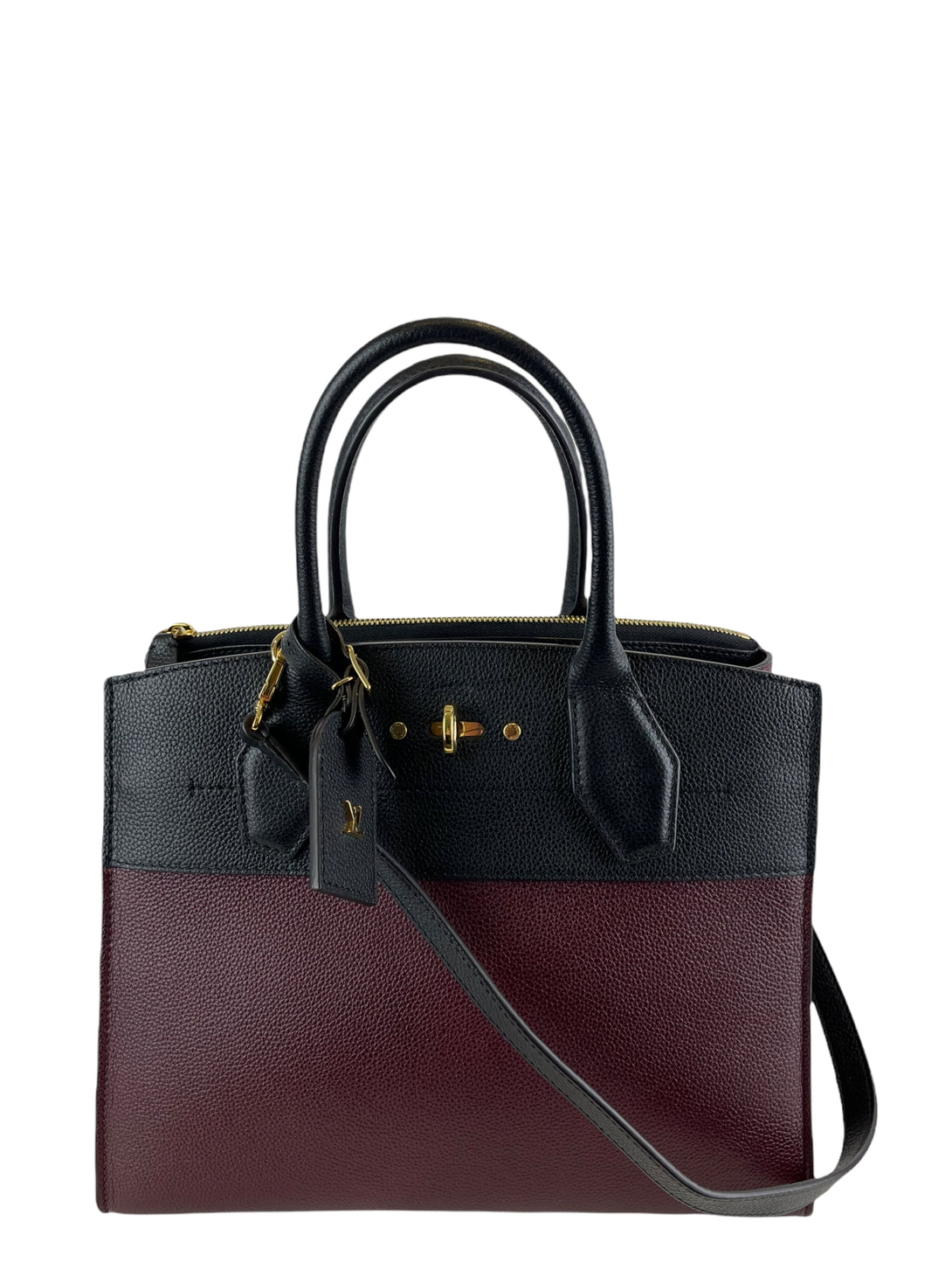 Louis Vuitton Black/ Purple Leather ‘City Steamer’ Tote/Shoulder Bag