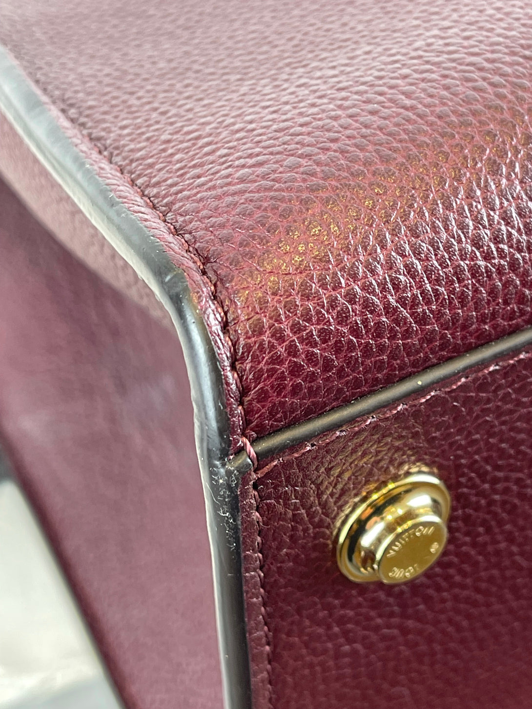 Good: Items show more prominent wear such as noticeable discoloration, stains and snags to fabric. May have worn corners and handles, tarnishing to hardware and creasing to leather. Pen or make up marks may be visible in the interior of the bag.