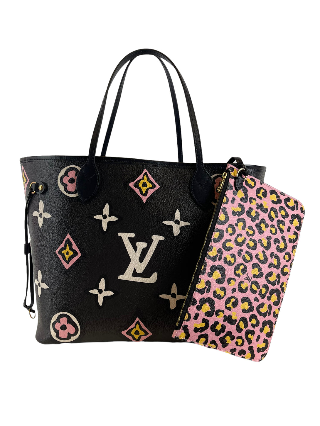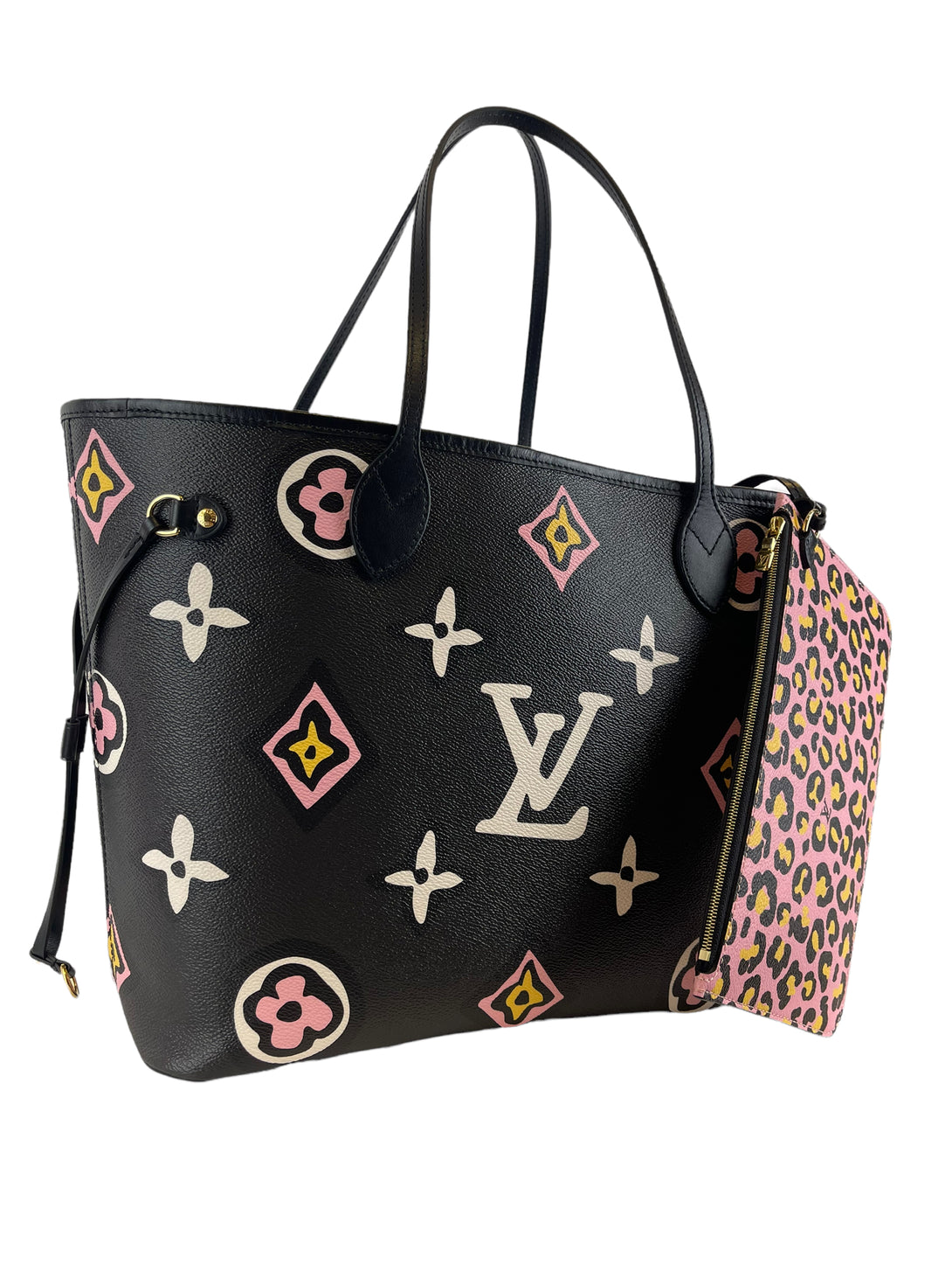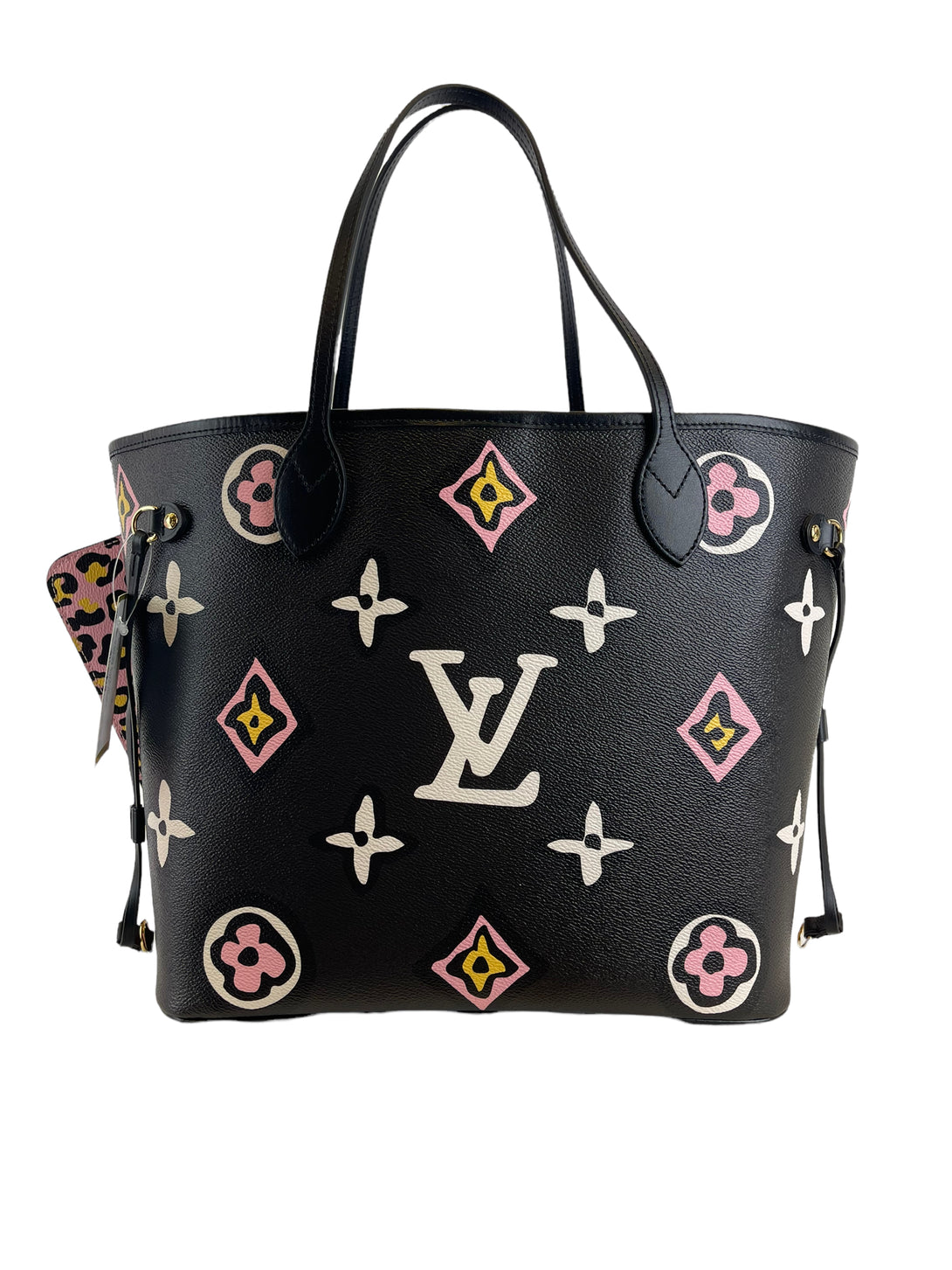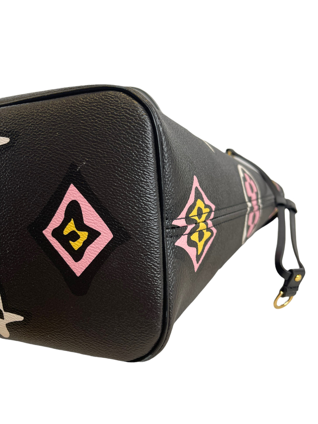 Louis Vuitton Black "Wild at Heart" Canvas Limited Edition Print Neverfull MM Tote