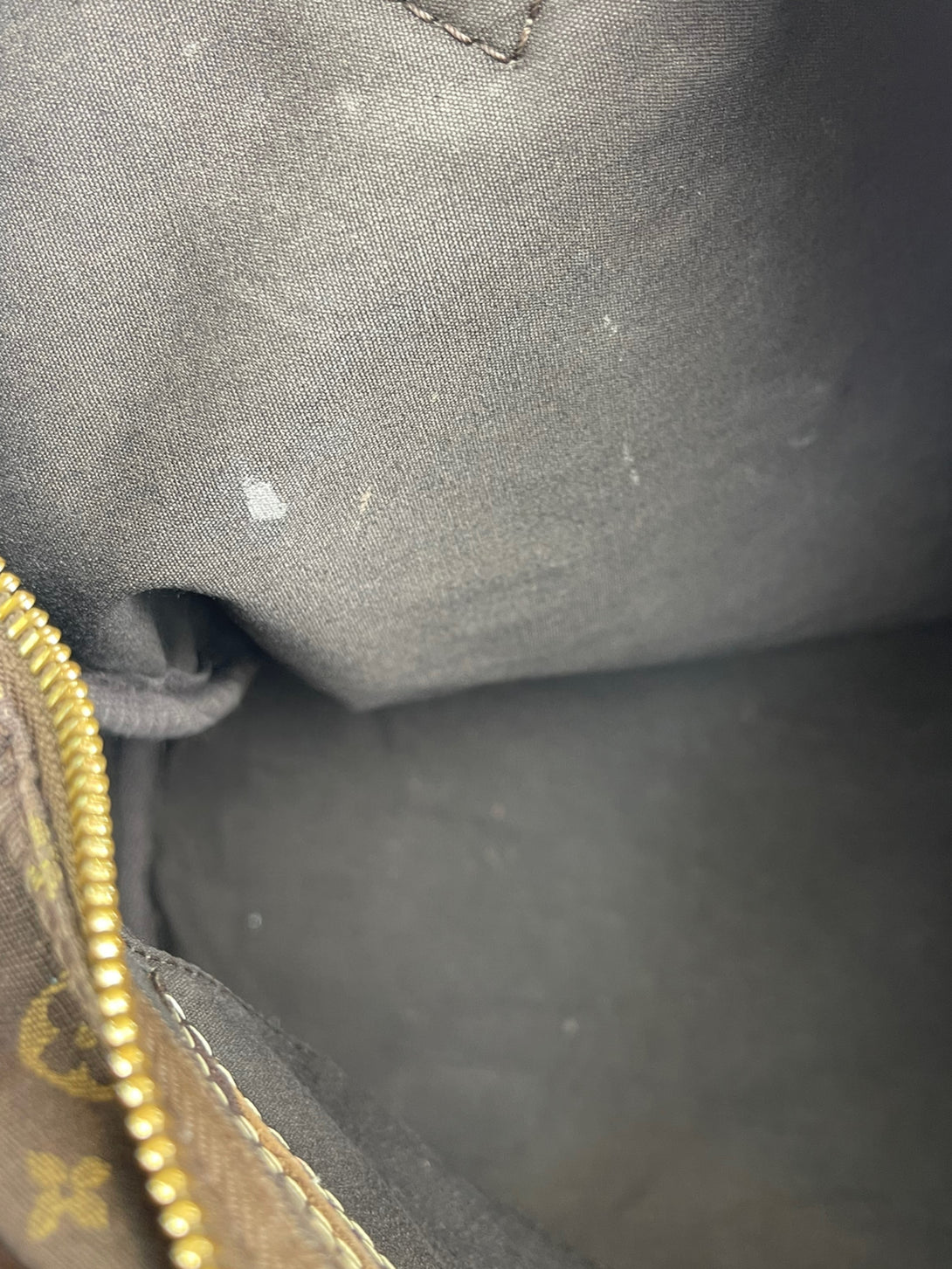 Good: Items show more prominent wear such as noticeable discoloration, stains and snags to fabric. May have worn corners and handles, tarnishing to hardware and creasing to leather. Pen or make up marks may be visible in the interior of the bag.