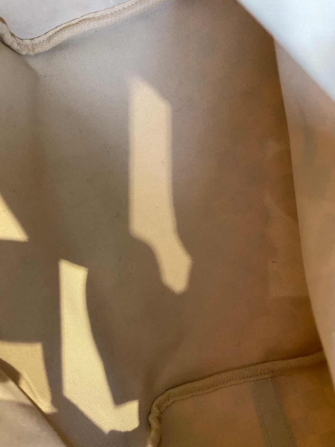 Good: Items show more prominent wear such as noticeable discoloration, stains and snags to fabric. May have worn corners and handles, tarnishing to hardware and creasing to leather. Pen or make up marks may be visible in the interior of the bag.
