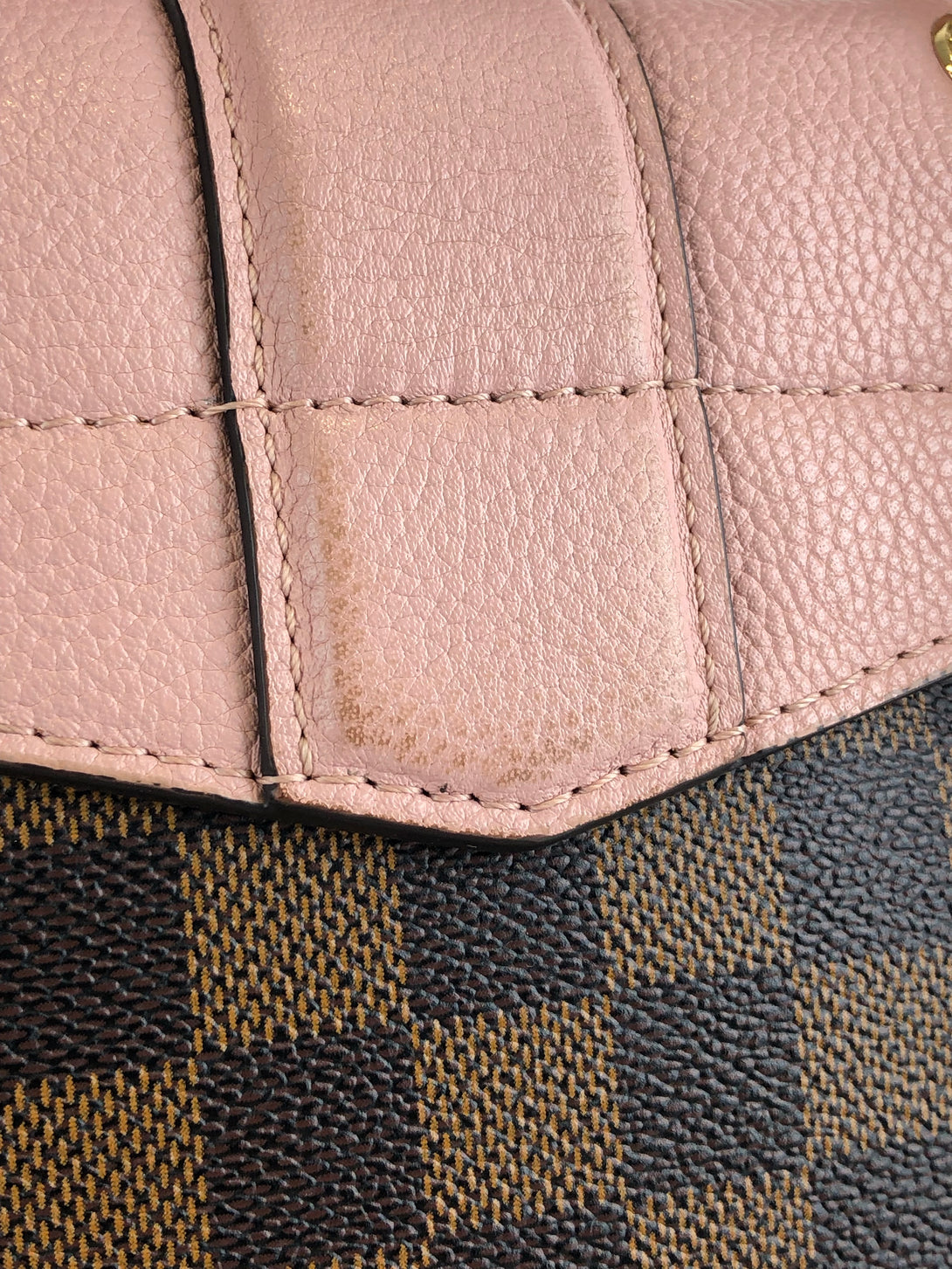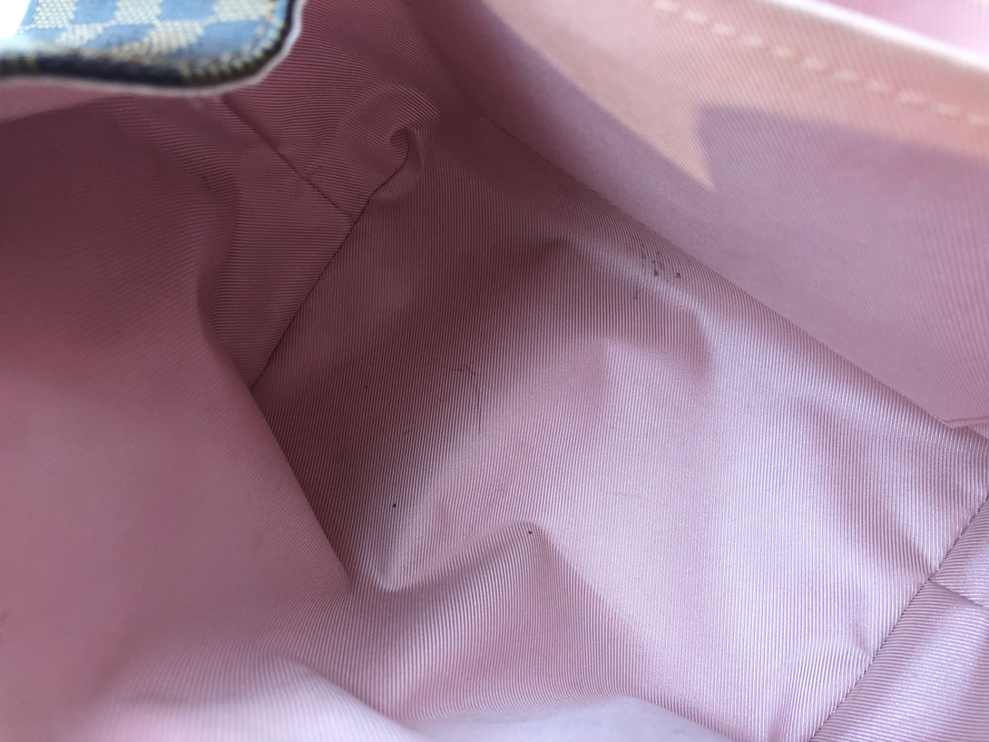 Good: Items show more prominent wear such as noticeable discoloration, stains and snags to fabric. May have worn corners and handles, tarnishing to hardware and creasing to leather. Pen or make up marks may be visible in the interior of the bag.