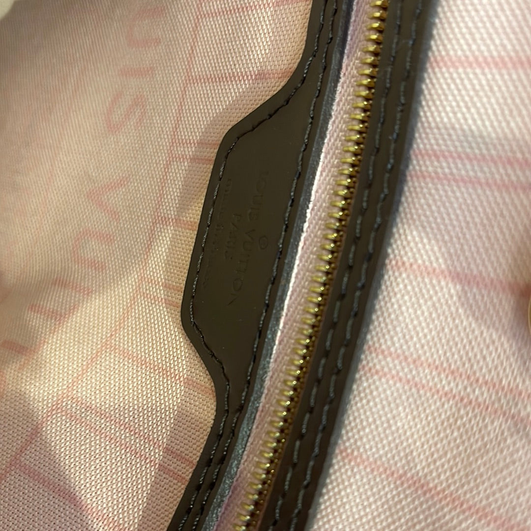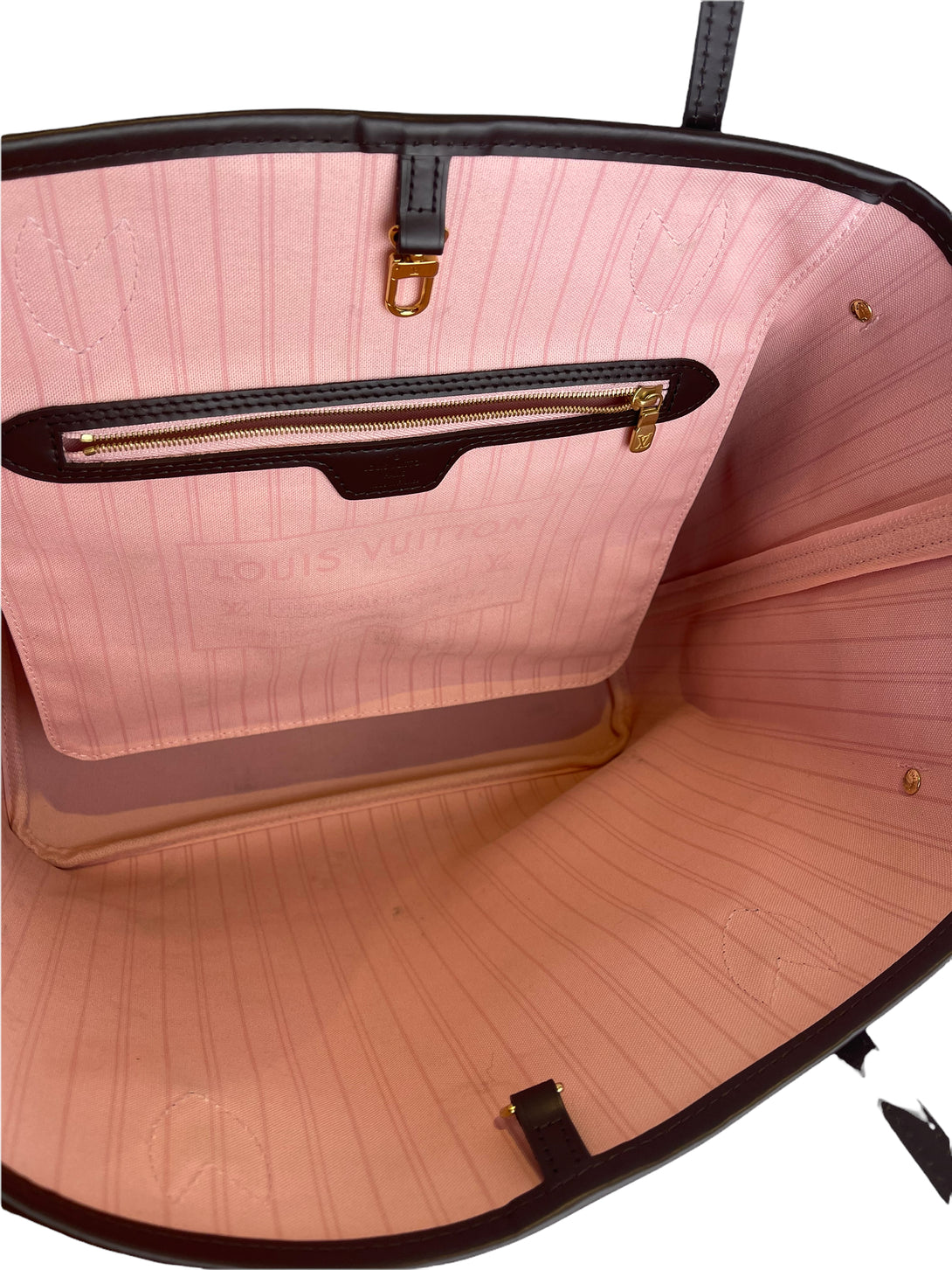 Louis Vuitton Damier Ebene Canvas "Neverfull" MM Tote - Pink Lining