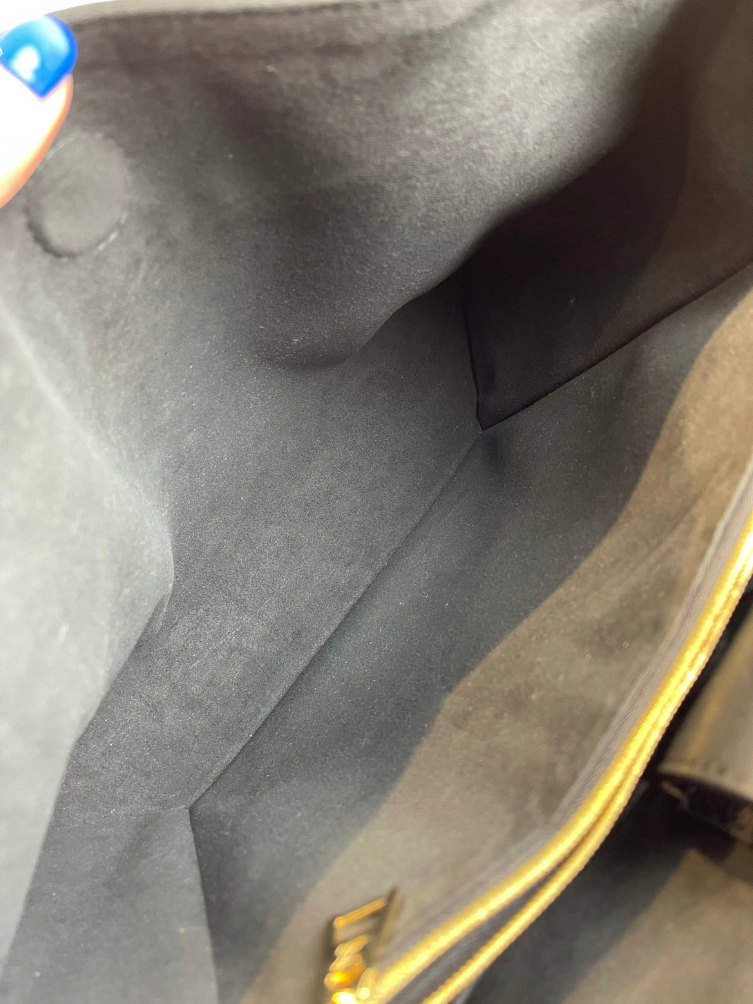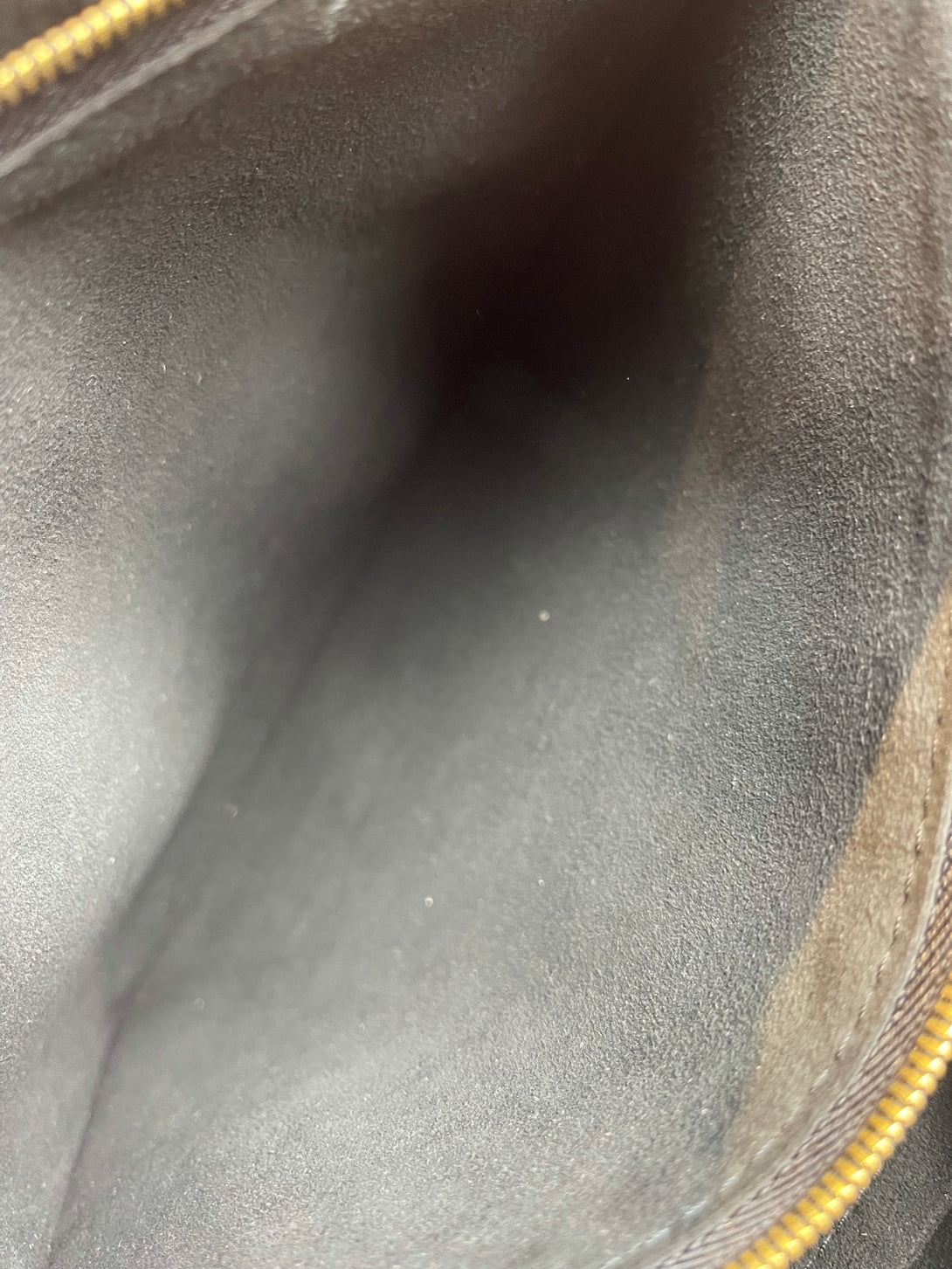 Good: Items show more prominent wear such as noticeable discoloration, stains and snags to fabric. May have worn corners and handles, tarnishing to hardware and creasing to leather. Pen or make up marks may be visible in the interior of the bag.