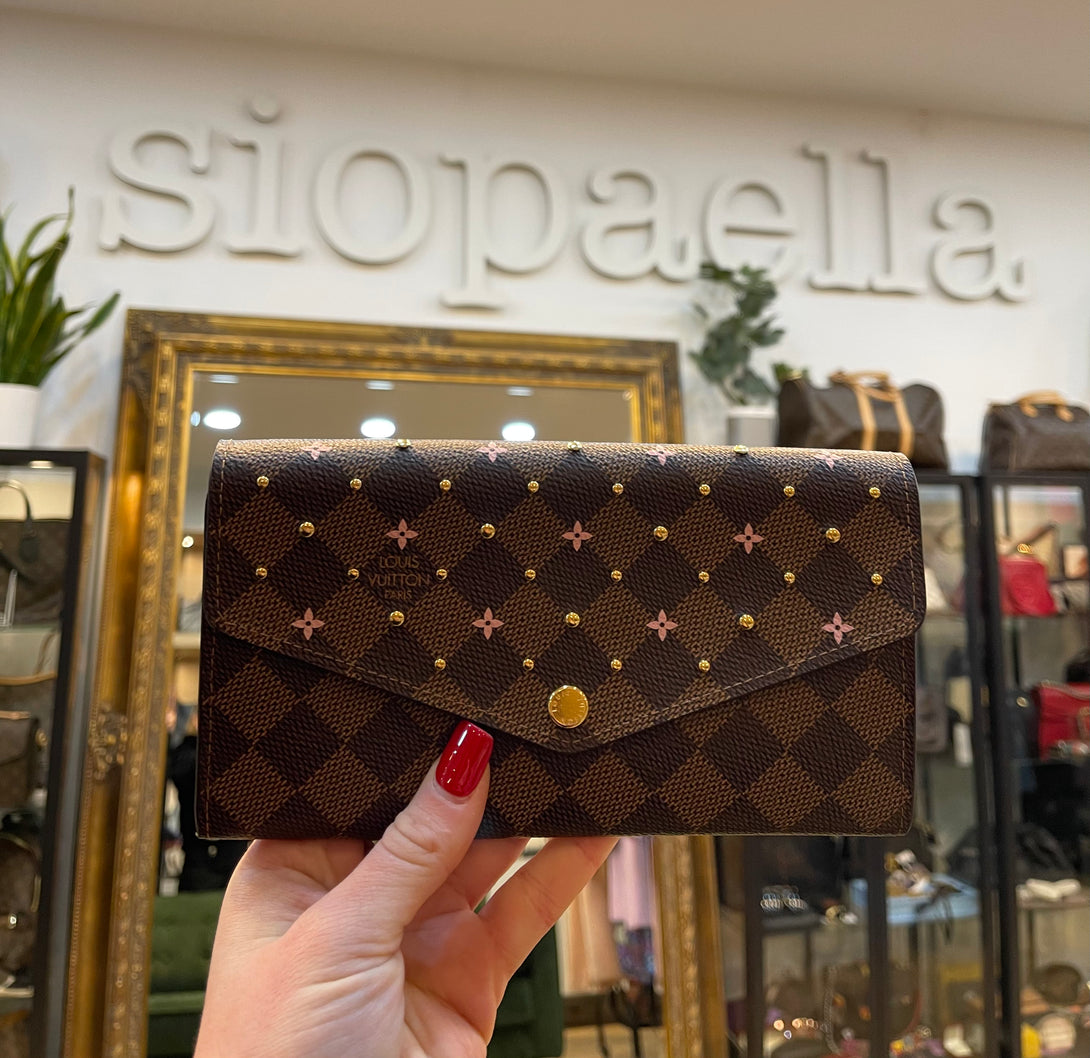 Louis Vuitton Damier Ebene Canvas Studded with Floral Print SARAH Wallet