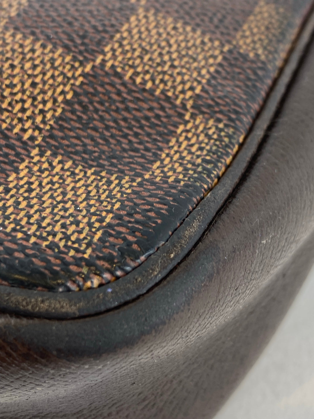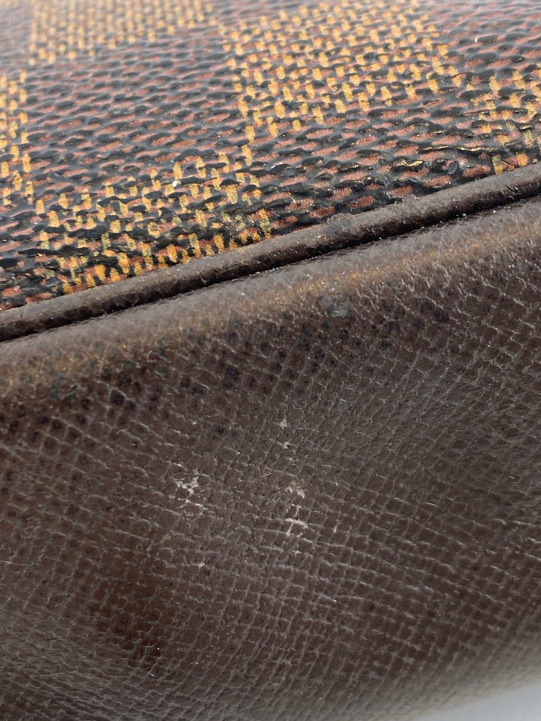 Fair: Very prominent wear, may have holes on corners, severe scuffs, piping of bag showing and pen marks to exterior. Interior may have pen or make up marks.