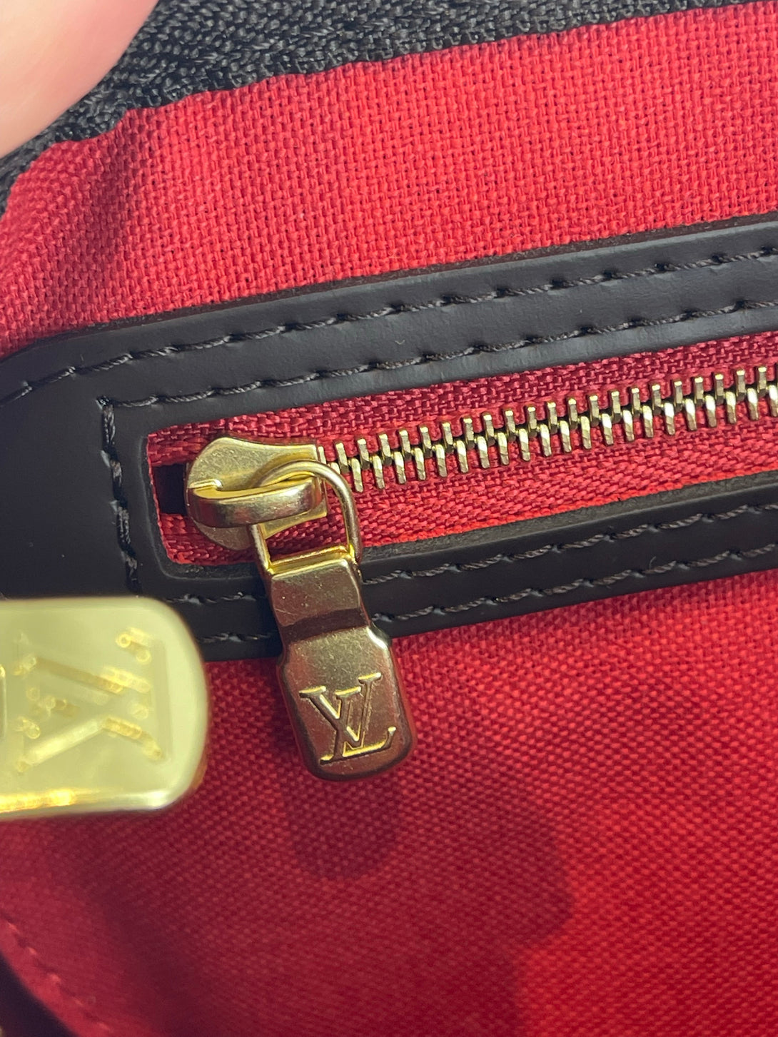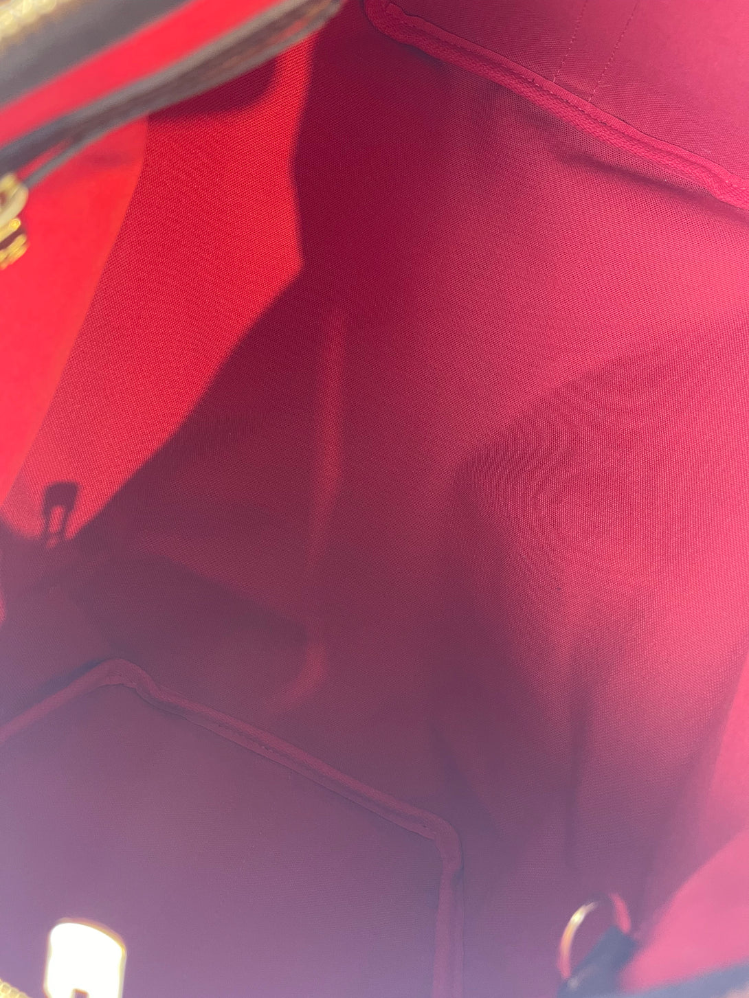 Good: Items show more prominent wear such as noticeable discoloration, stains and snags to fabric. May have worn corners and handles, tarnishing to hardware and creasing to leather. Pen or make up marks may be visible in the interior of the bag.