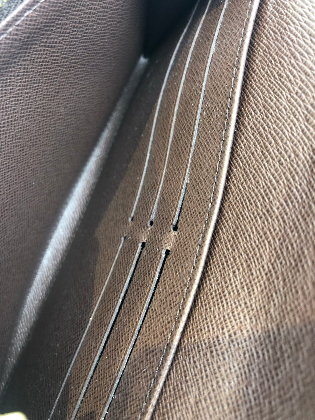 Fair: Very prominent wear, may have holes on corners, severe scuffs, piping of bag showing and pen marks to exterior. Interior may have pen or make up marks.