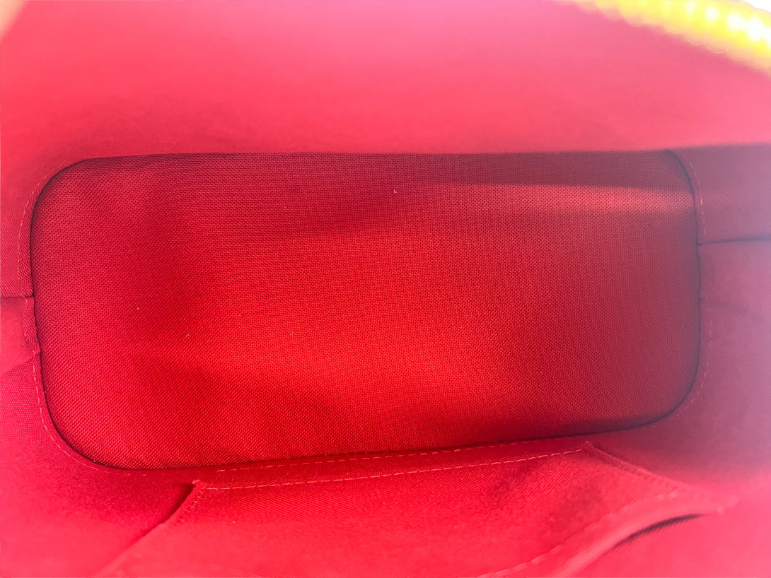 Good: Items show more prominent wear such as noticeable discoloration, stains and snags to fabric. May have worn corners and handles, tarnishing to hardware and creasing to leather. Pen or make up marks may be visible in the interior of the bag.