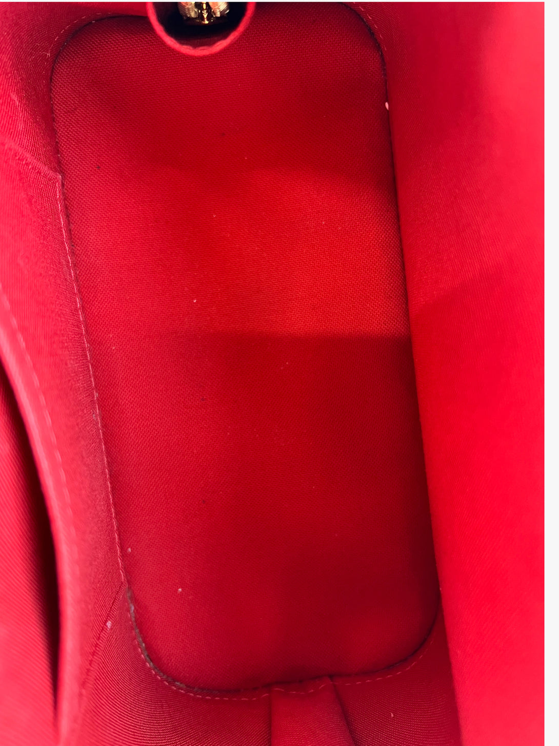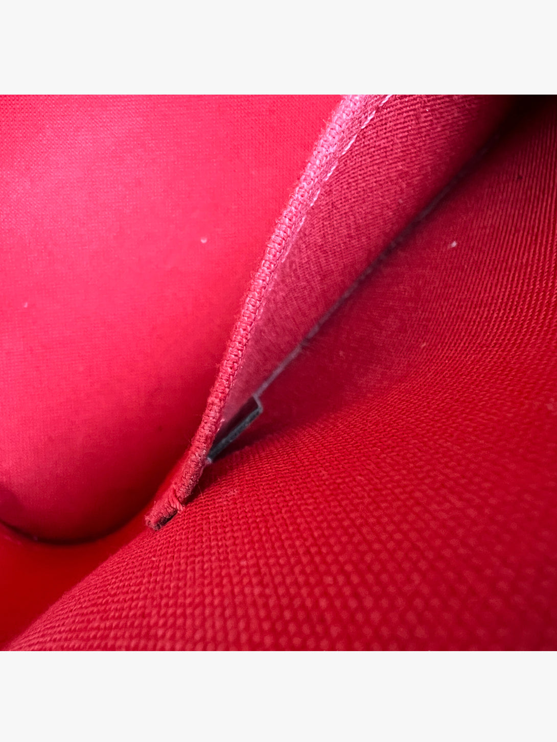 Good: Items show more prominent wear such as noticeable discoloration, stains and snags to fabric. May have worn corners and handles, tarnishing to hardware and creasing to leather. Pen or make up marks may be visible in the interior of the bag.