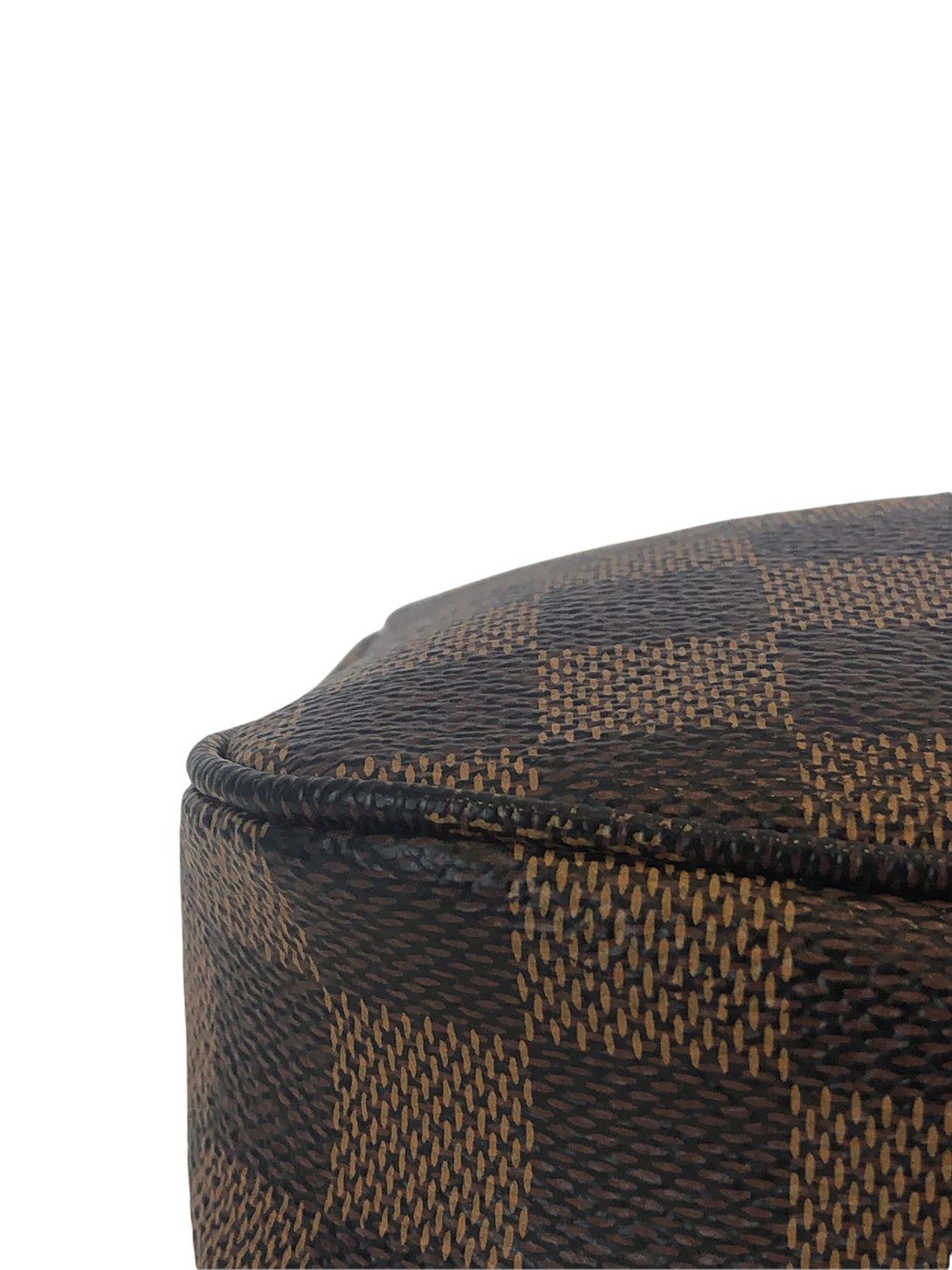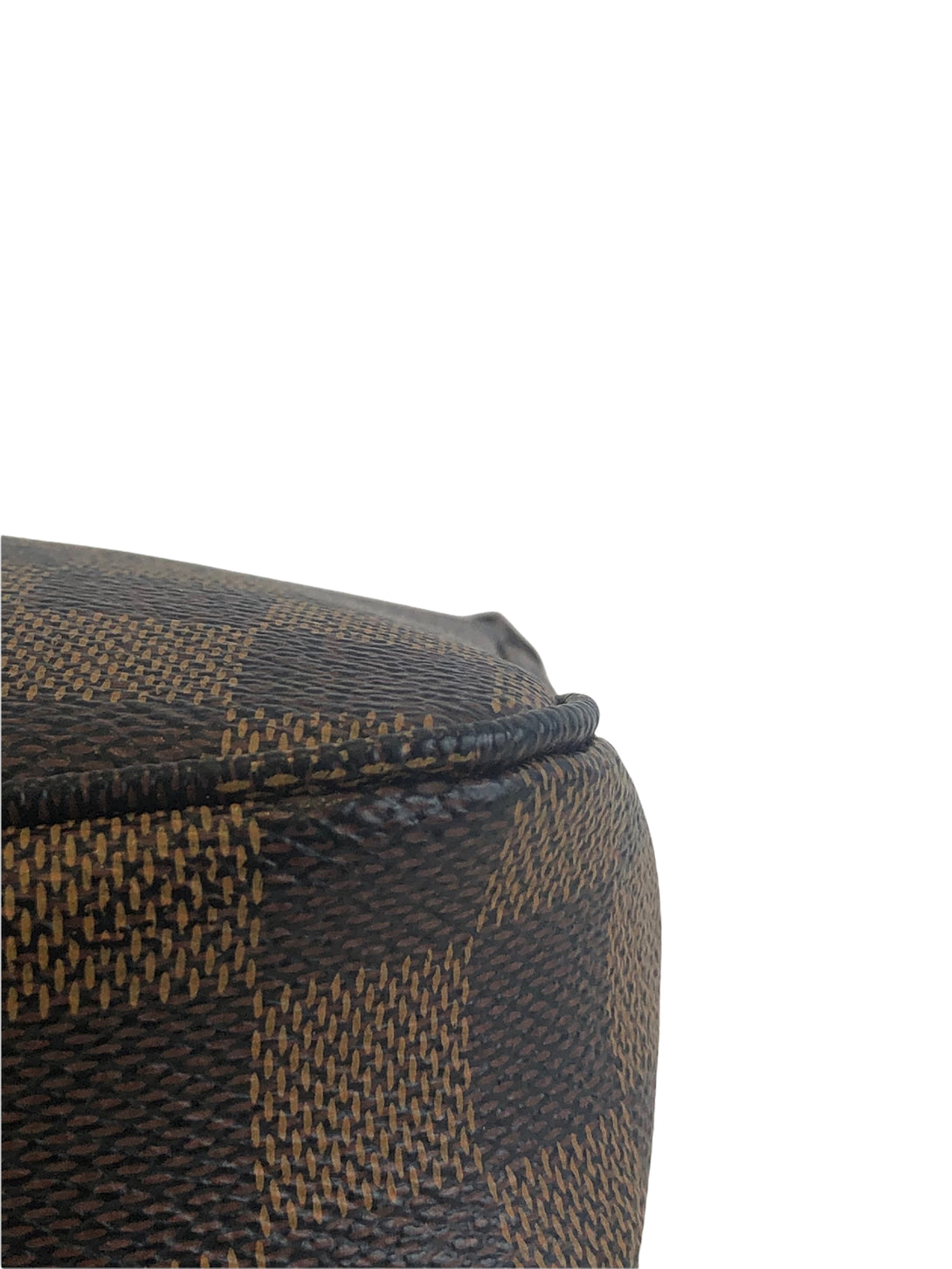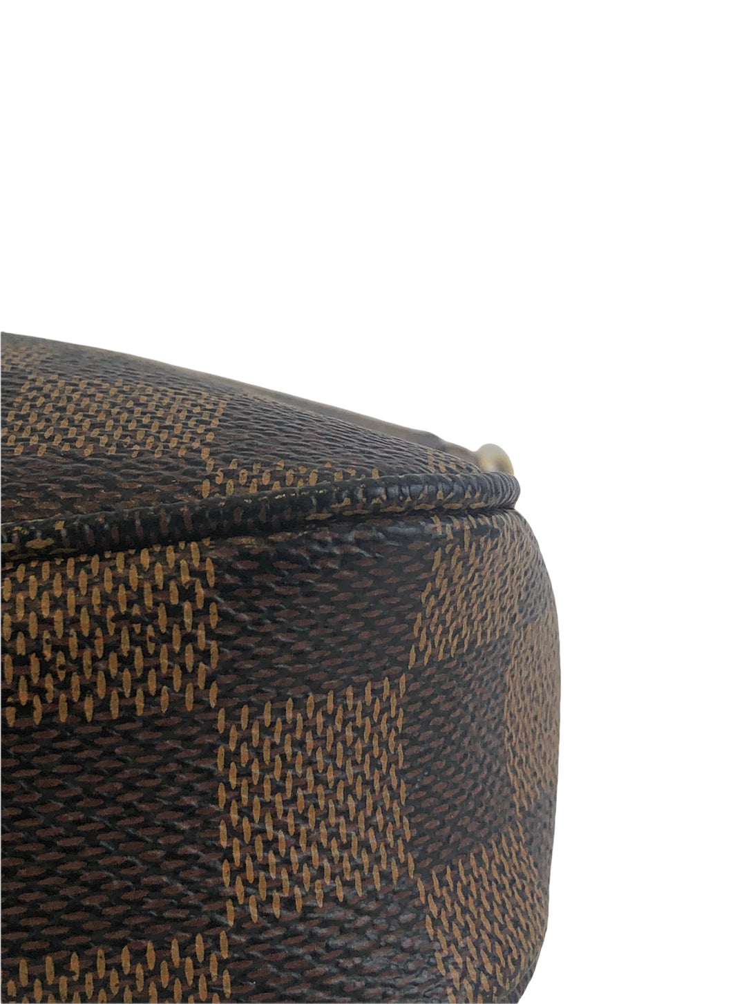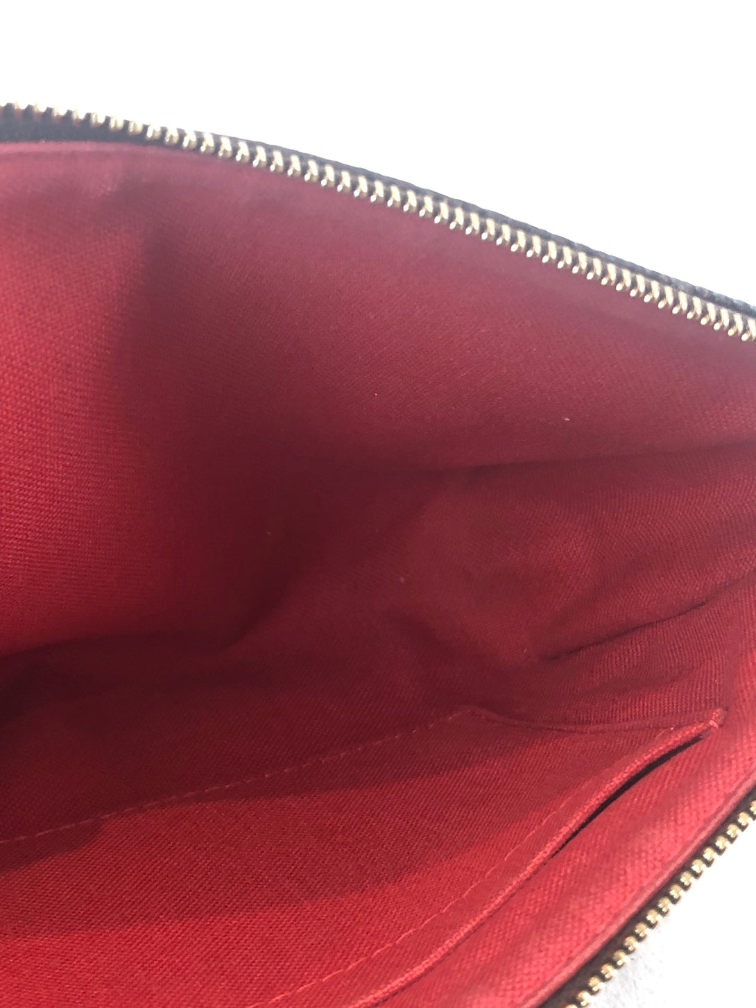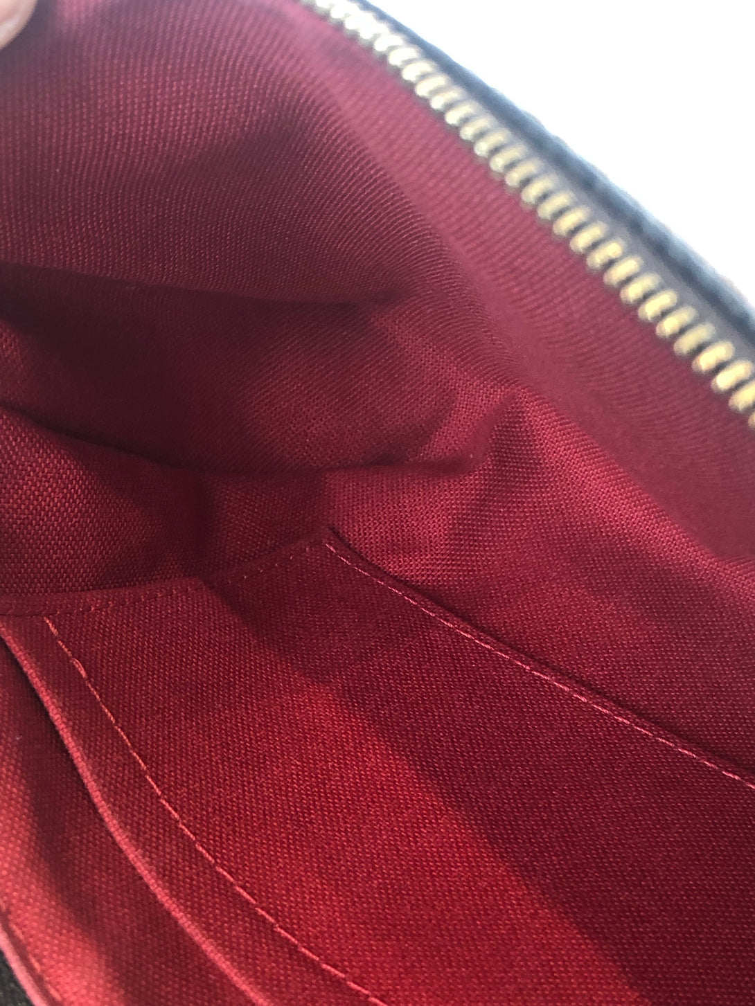 Good: Items show more prominent wear such as noticeable discoloration, stains and snags to fabric. May have worn corners and handles, tarnishing to hardware and creasing to leather. Pen or make up marks may be visible in the interior of the bag.