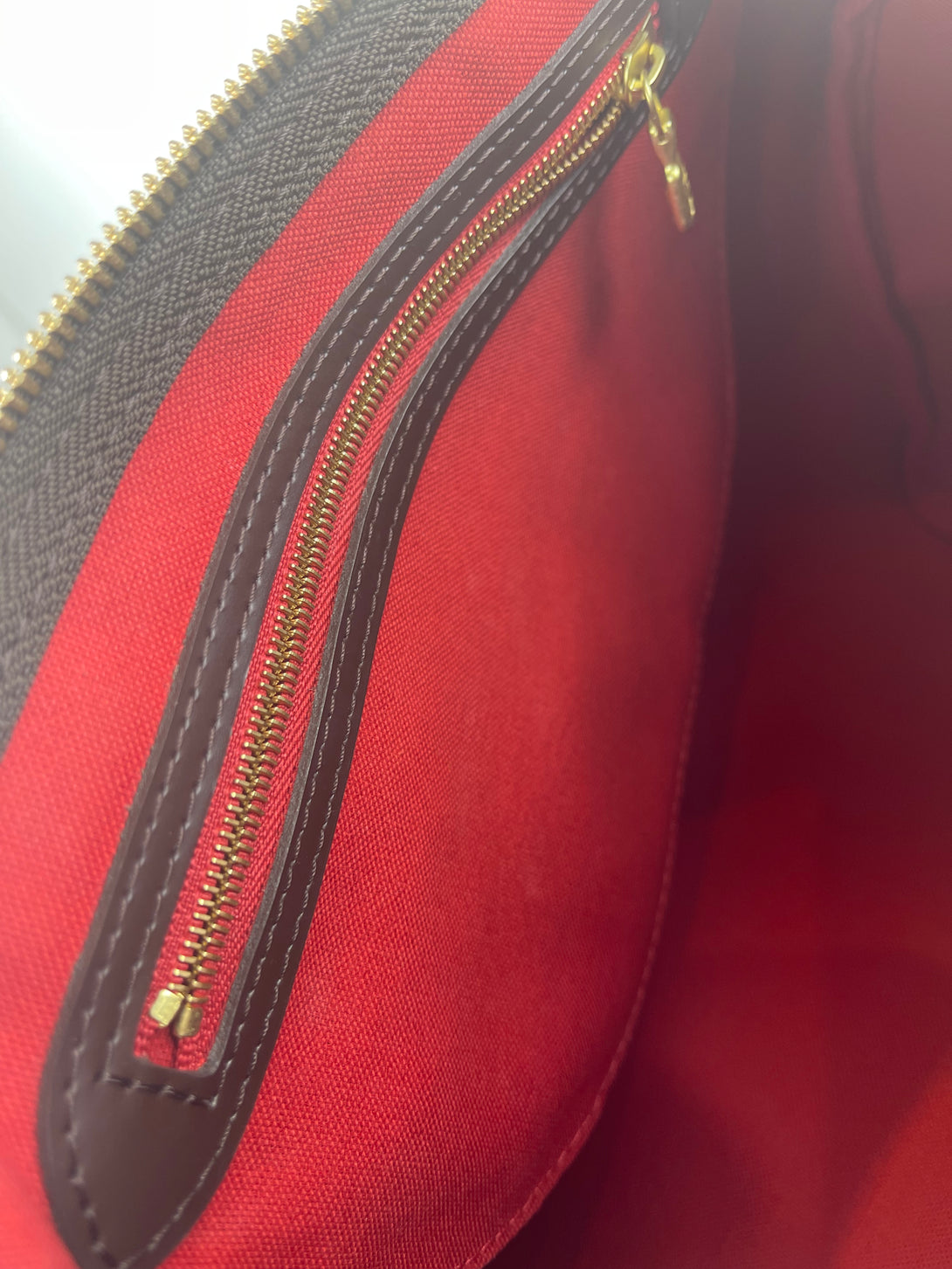 Fair: Very prominent wear, may have holes on corners, severe scuffs, piping of bag showing and pen marks to exterior. Interior may have pen or make up marks.