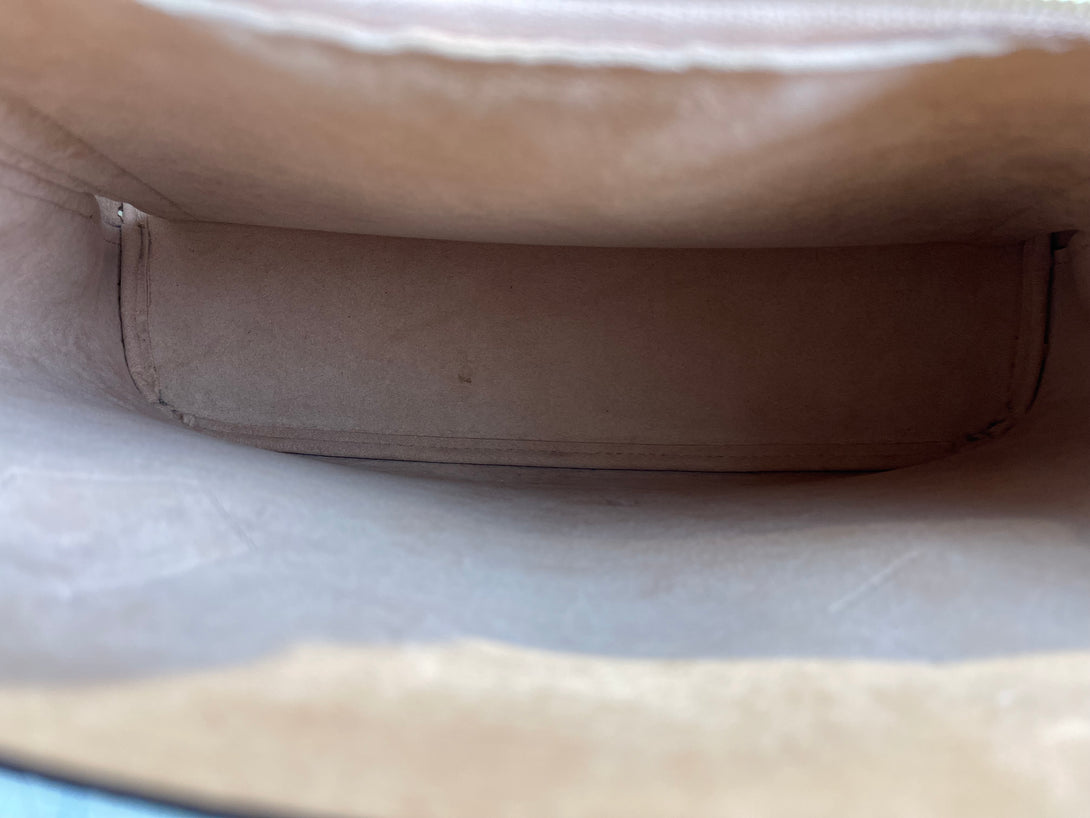 Good: Items show more prominent wear such as noticeable discoloration, stains and snags to fabric. May have worn corners and handles, tarnishing to hardware and creasing to leather. Pen or make up marks may be visible in the interior of the bag.