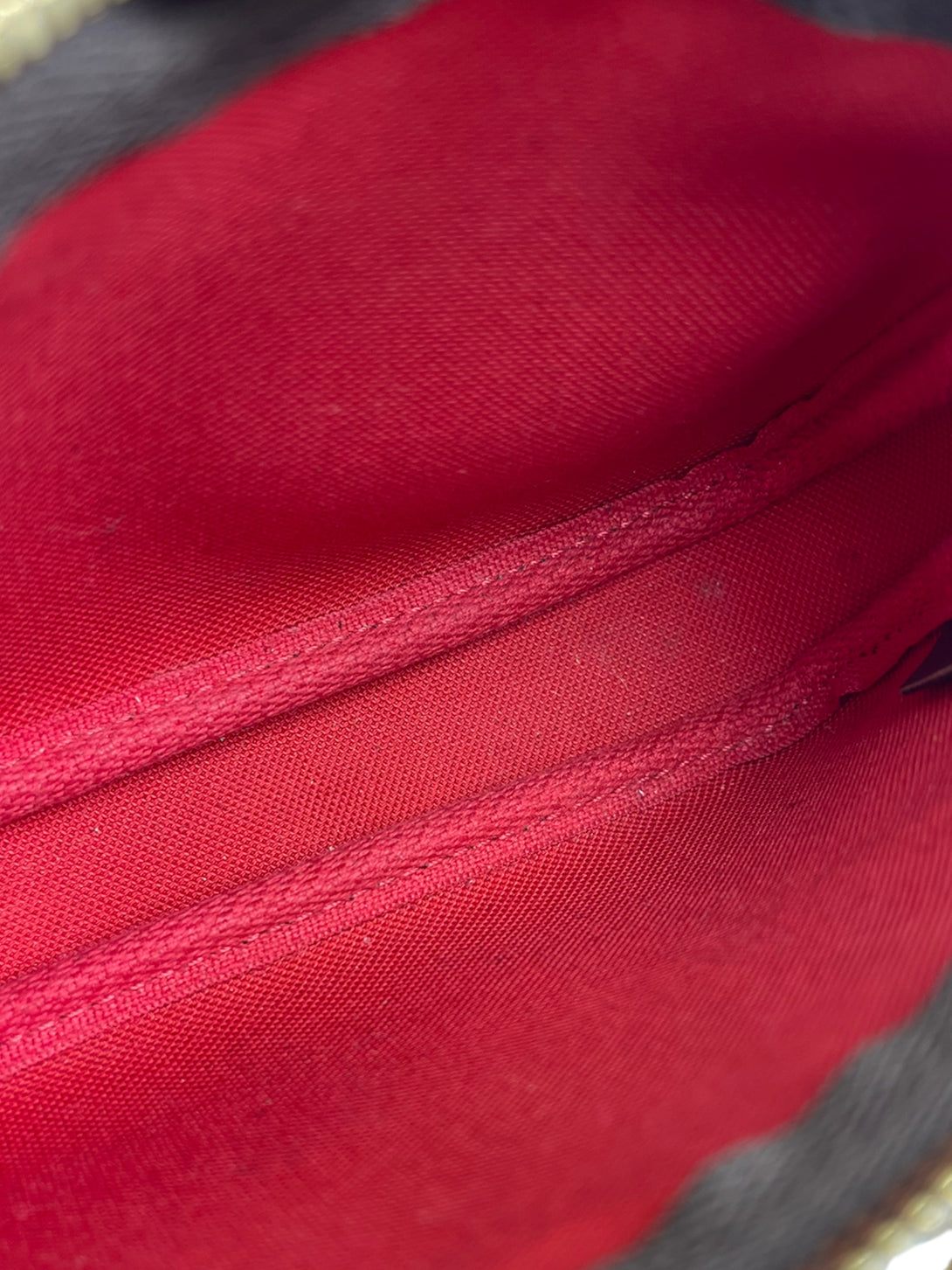 Good: Items show more prominent wear such as noticeable discoloration, stains and snags to fabric. May have worn corners and handles, tarnishing to hardware and creasing to leather. Pen or make up marks may be visible in the interior of the bag.