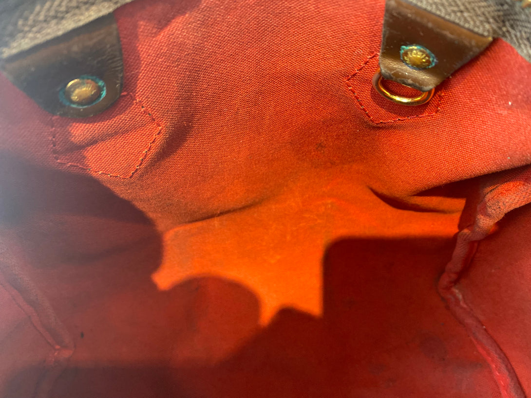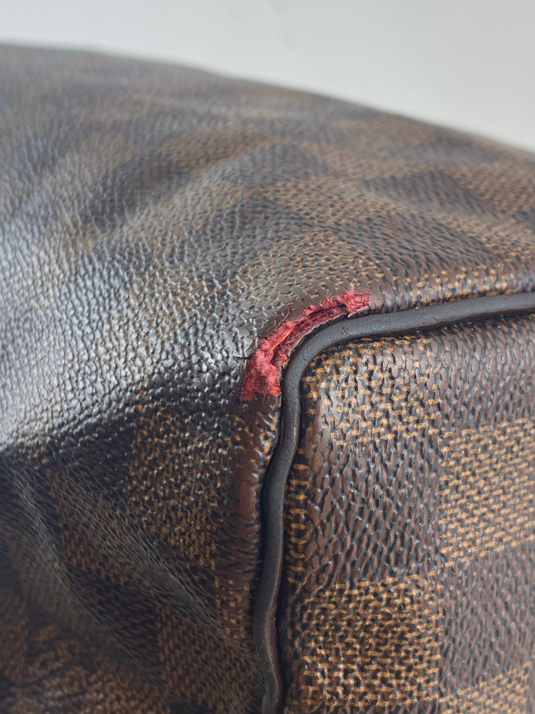 • Overall Condition: Fair Pre-Loved Condition tears and scuffs on corners, ripping on leather, colour transfer on handles as shown