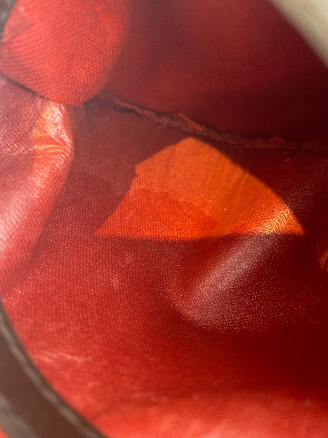 Good: Items show more prominent wear such as noticeable discoloration, stains and snags to fabric. May have worn corners and handles, tarnishing to hardware and creasing to leather. Pen or make up marks may be visible in the interior of the bag.