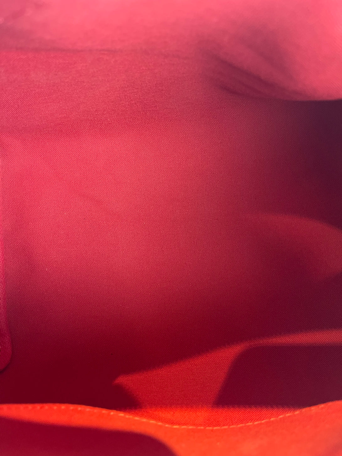 Good: Items show more prominent wear such as noticeable discoloration, stains and snags to fabric. May have worn corners and handles, tarnishing to hardware and creasing to leather. Pen or make up marks may be visible in the interior of the bag.