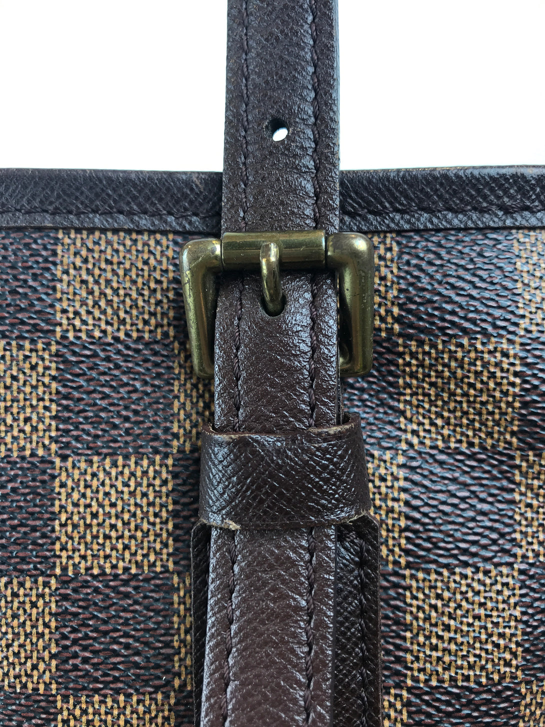 Fair: Very prominent wear, may have holes on corners, severe scuffs, piping of bag showing and pen marks to exterior. Interior may have pen or make up marks.