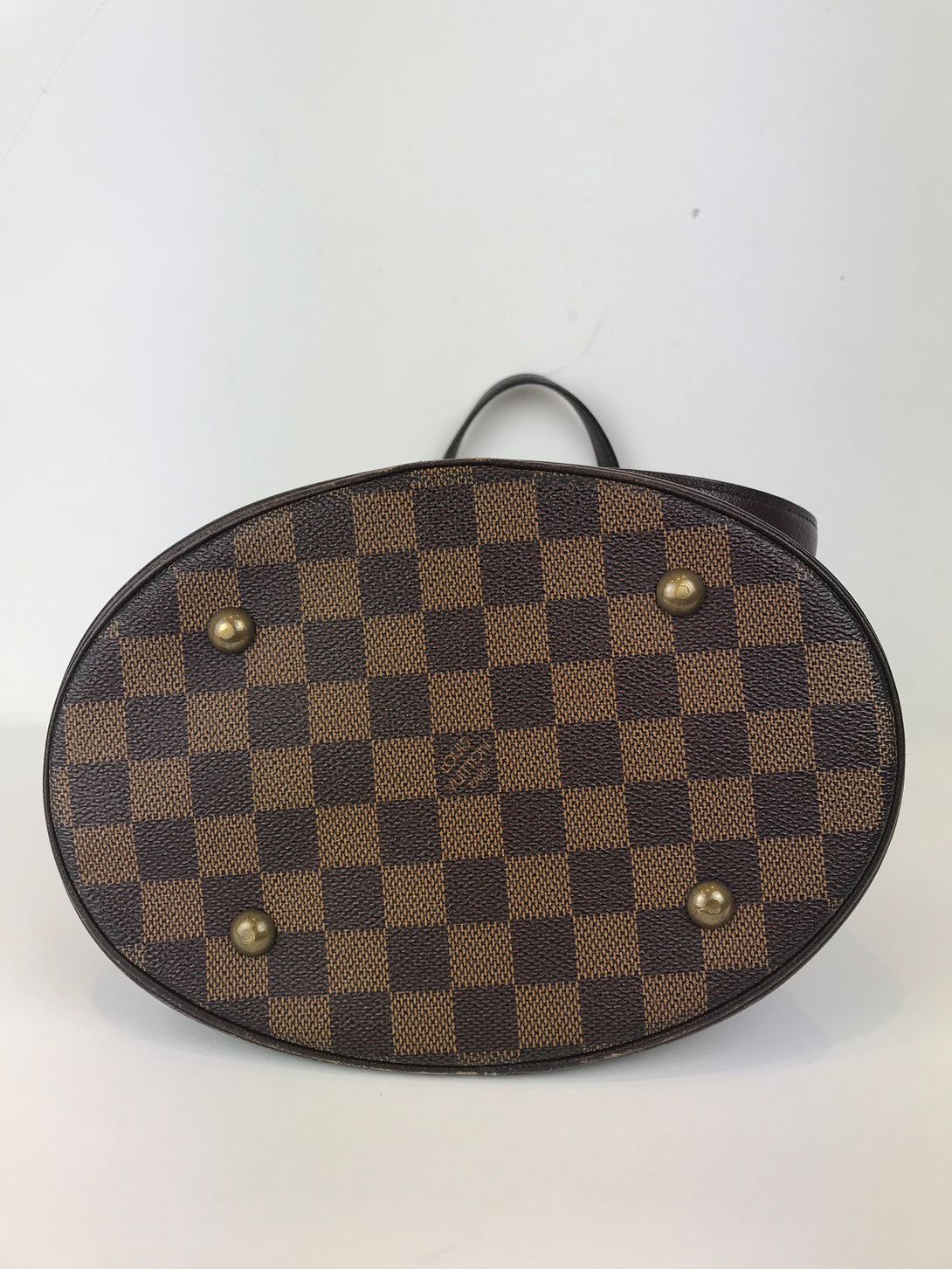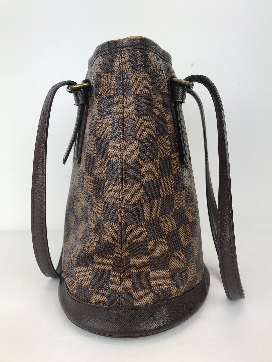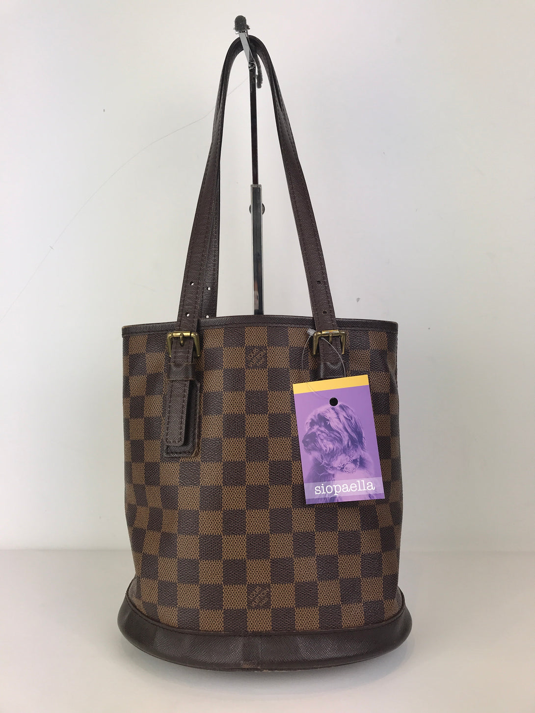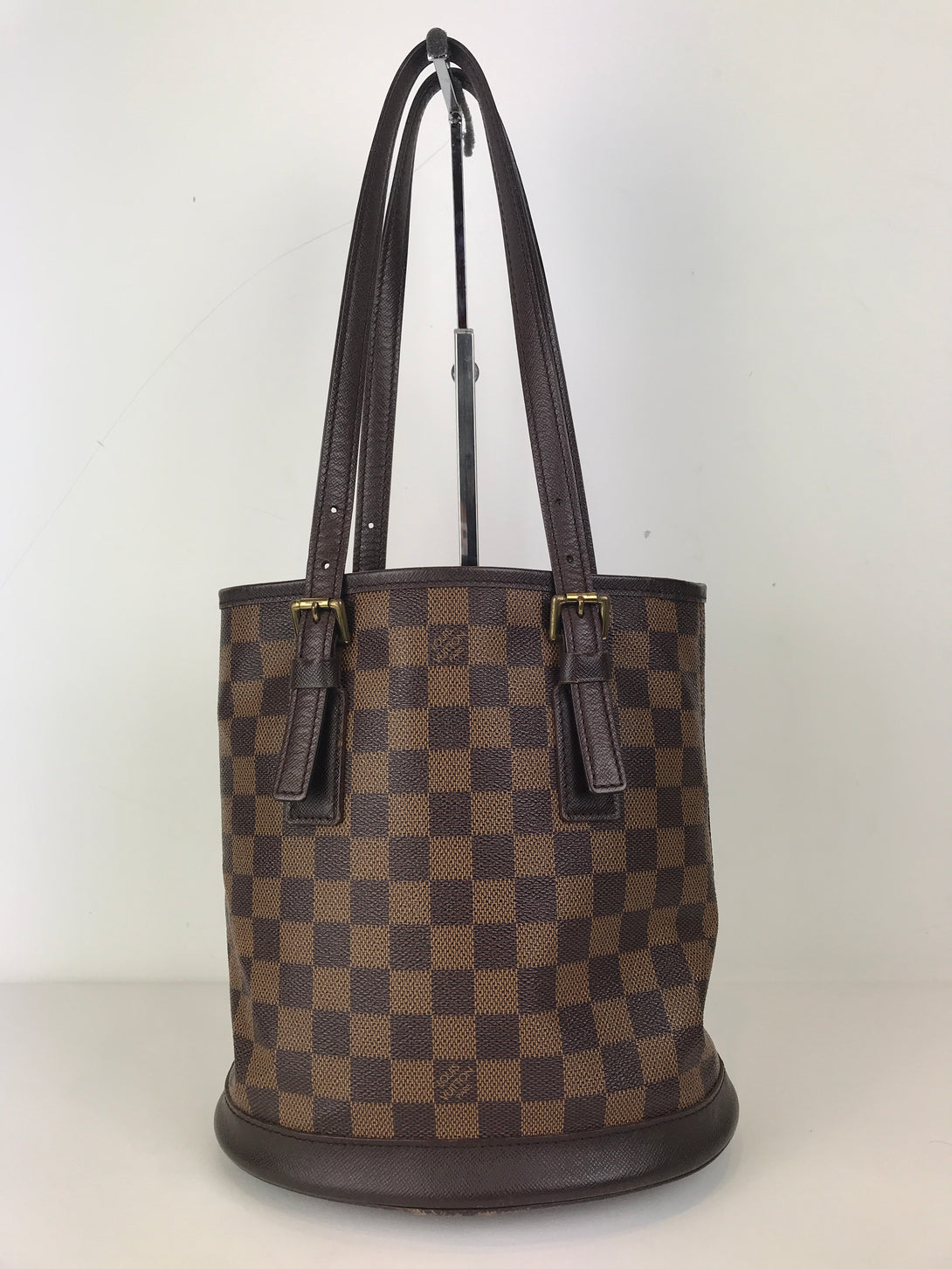 Good: Items show more prominent wear such as noticeable discoloration, stains and snags to fabric. May have worn corners and handles, tarnishing to hardware and creasing to leather. Pen or make up marks may be visible in the interior of the bag.