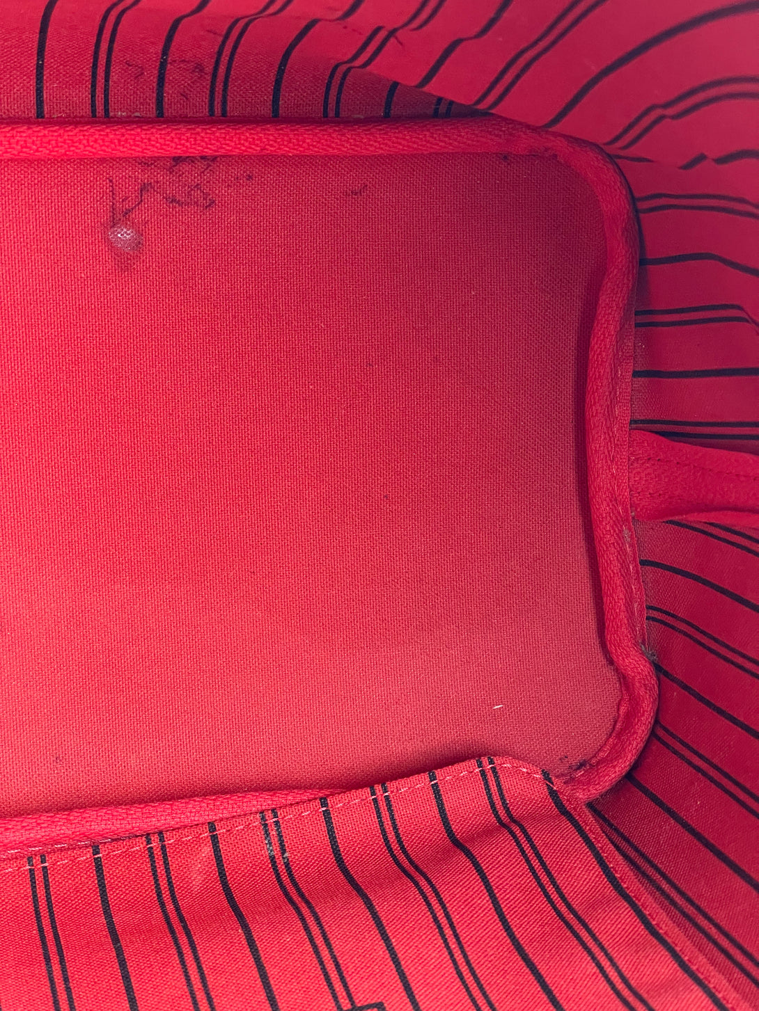 Good: Items show more prominent wear such as noticeable discoloration, stains and snags to fabric. May have worn corners and handles, tarnishing to hardware and creasing to leather. Pen or make up marks may be visible in the interior of the bag.