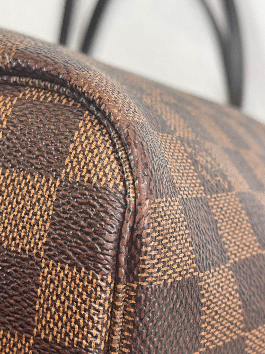 Fair: Very prominent wear, may have holes on corners, severe scuffs, piping of bag showing and pen marks to exterior. Interior may have pen or make up marks.