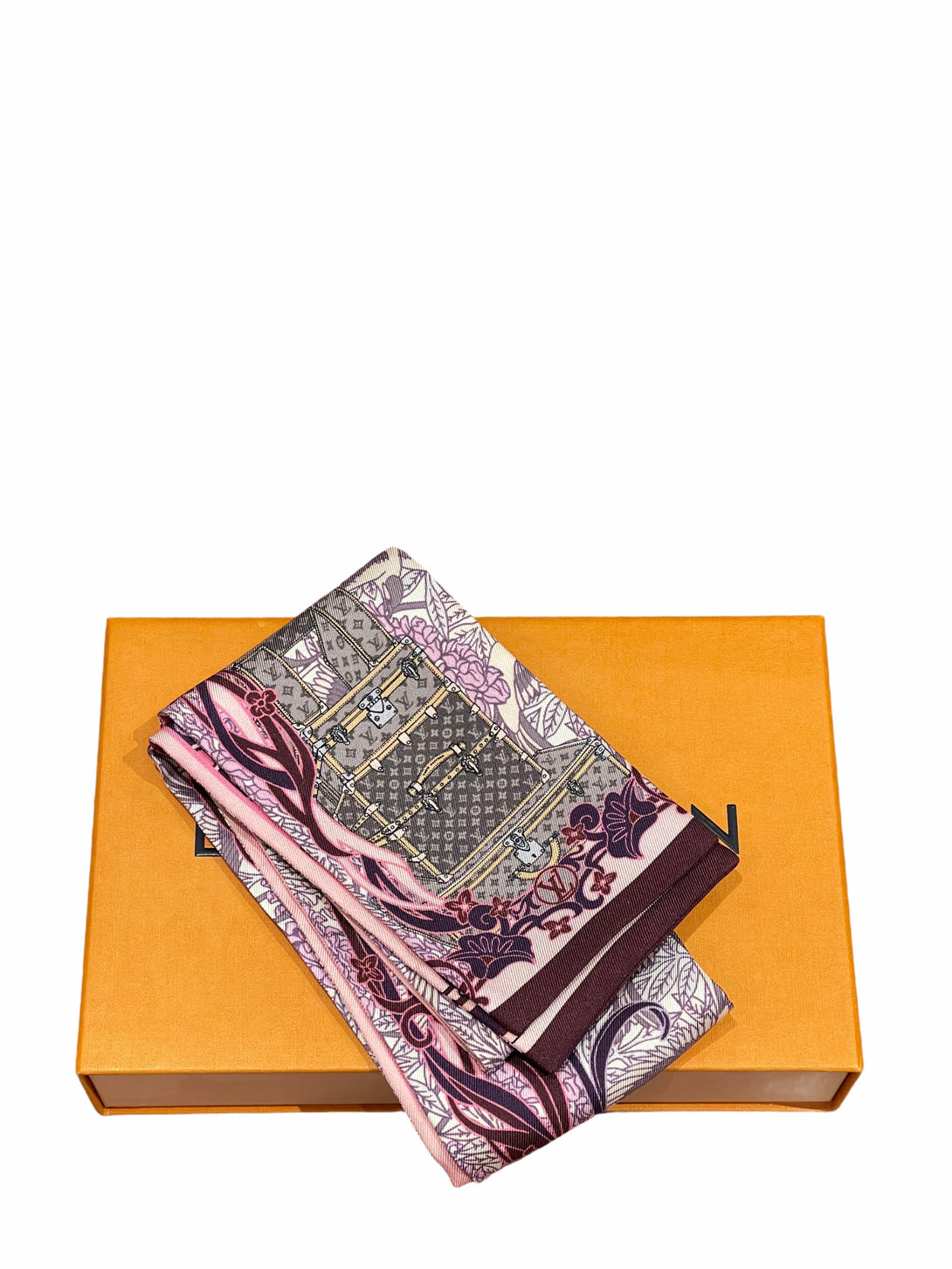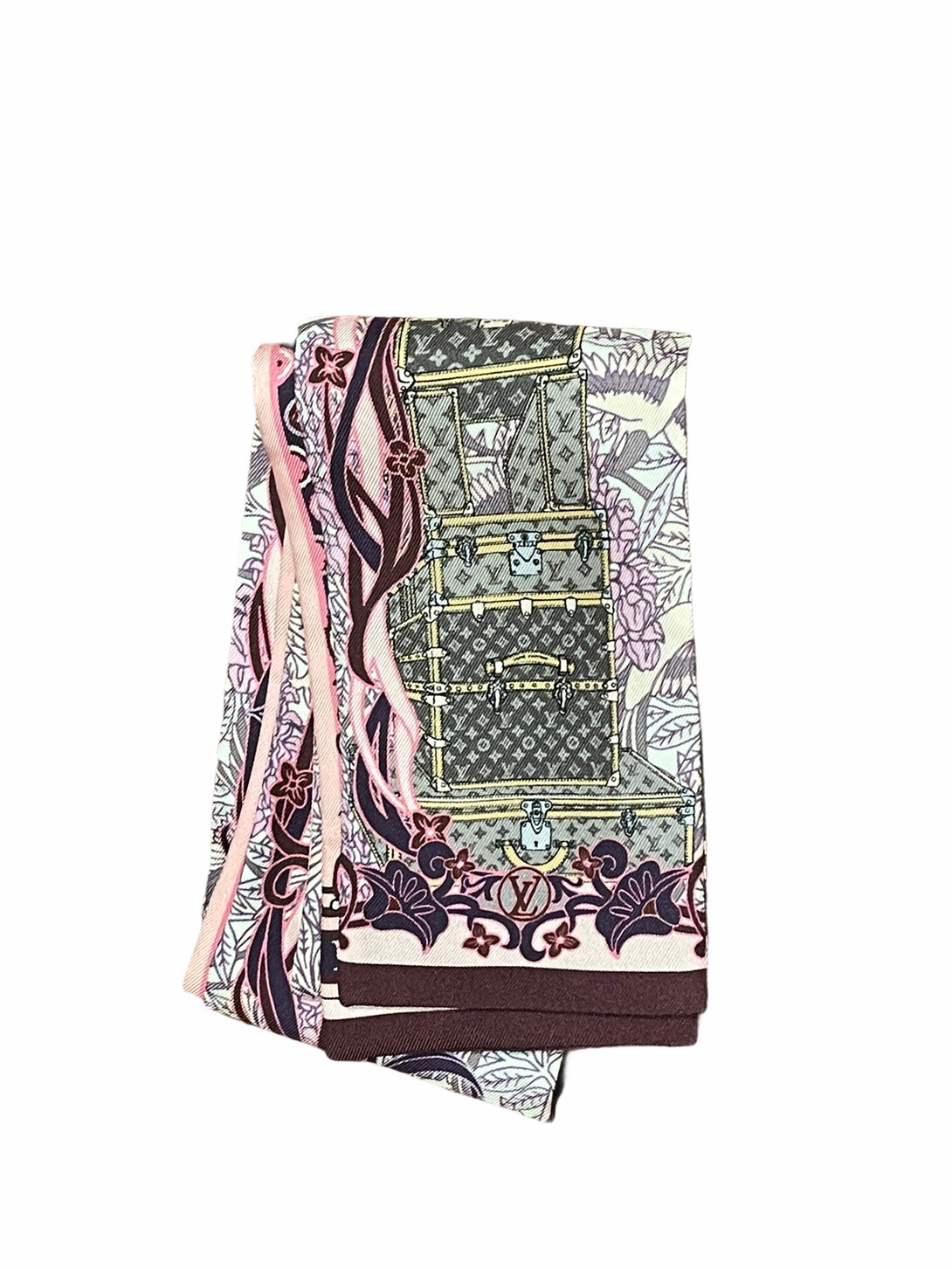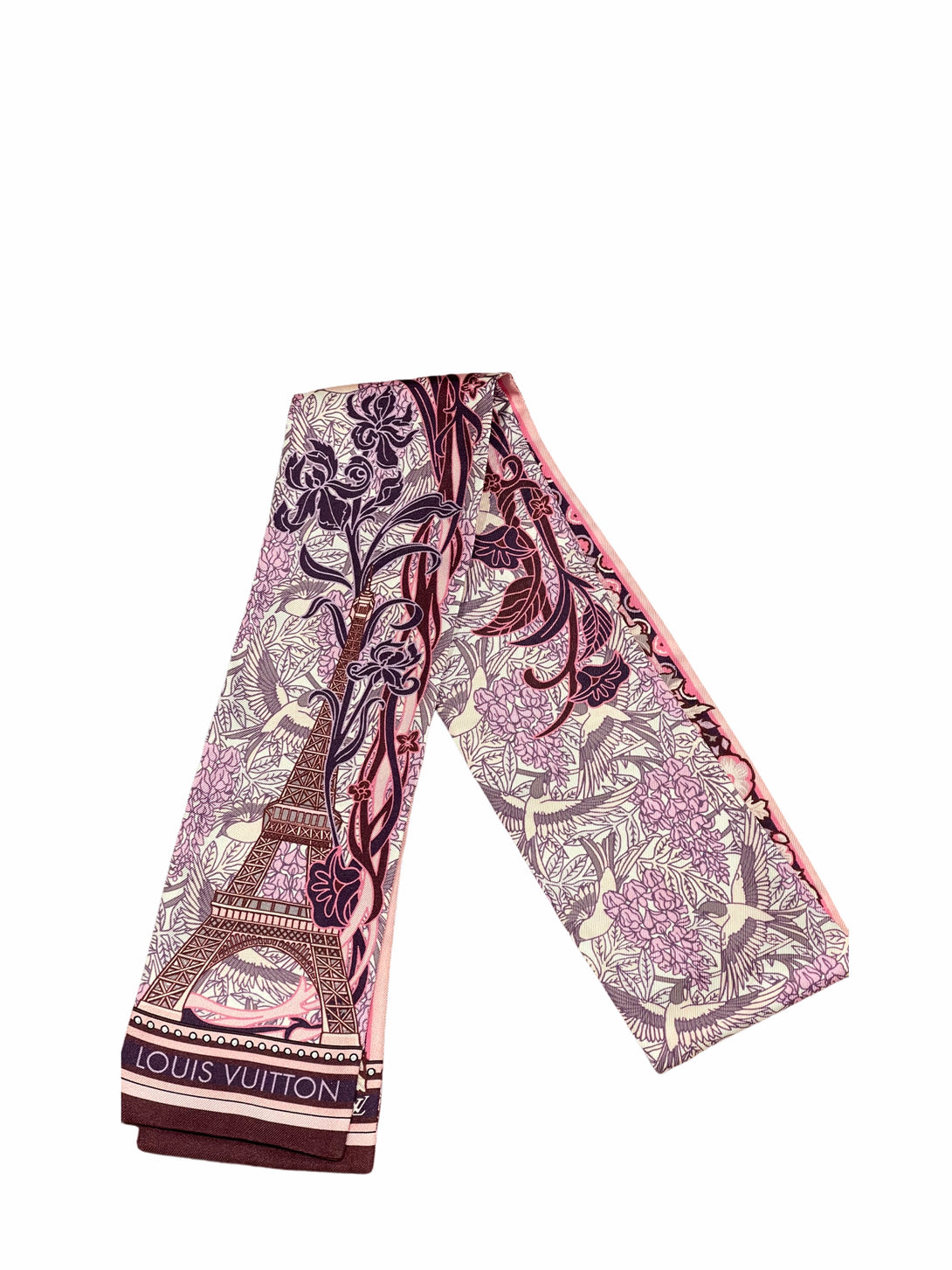 Louis Vuitton Fuschia Silk Monogram / Paris Motif Slim Scarf