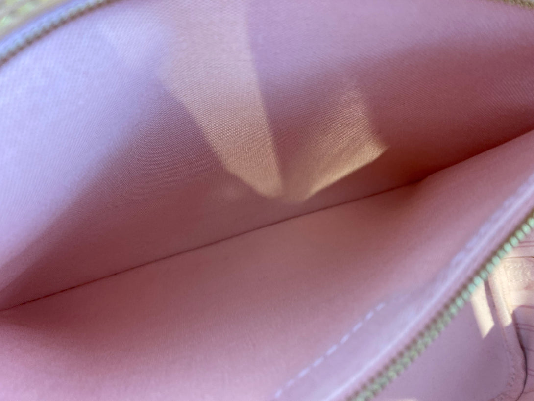 Good: Items show more prominent wear such as noticeable discoloration, stains and snags to fabric. May have worn corners and handles, tarnishing to hardware and creasing to leather. Pen or make up marks may be visible in the interior of the bag.