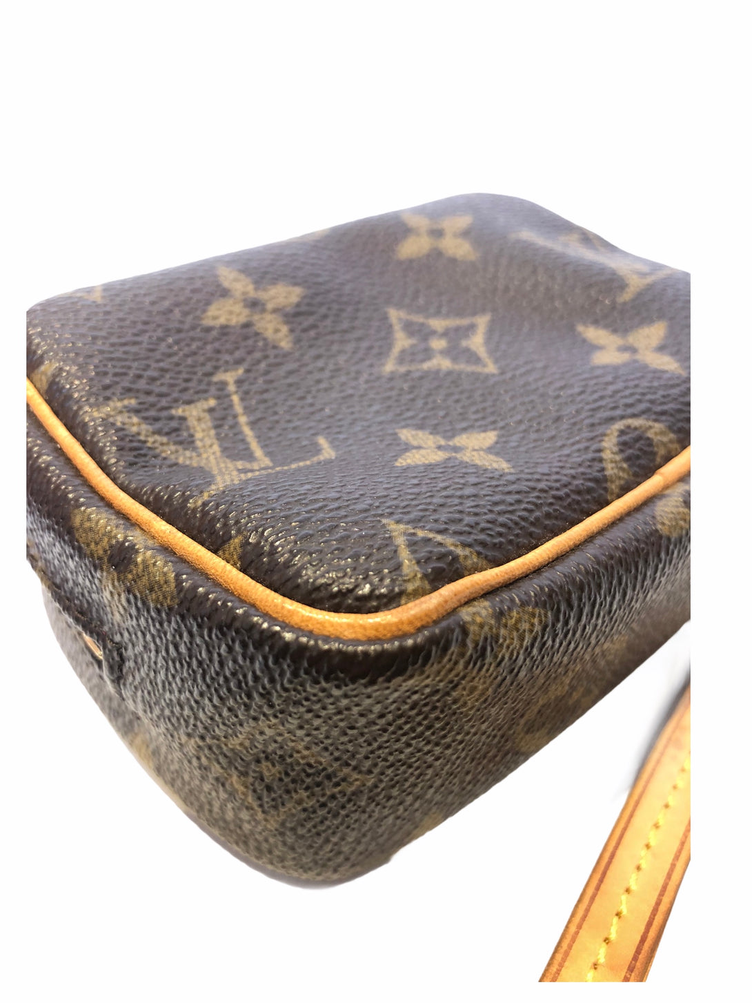 Fair: Very prominent wear, may have holes on corners, severe scuffs, piping of bag showing and pen marks to exterior. Interior may have pen or make up marks.