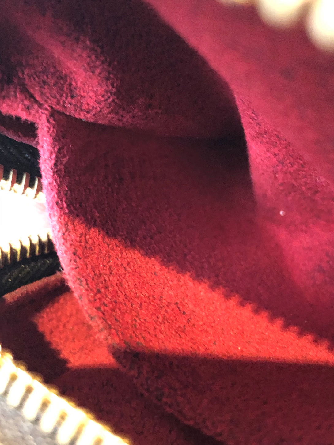 Good: Items show more prominent wear such as noticeable discoloration, stains and snags to fabric. May have worn corners and handles, tarnishing to hardware and creasing to leather. Pen or make up marks may be visible in the interior of the bag.