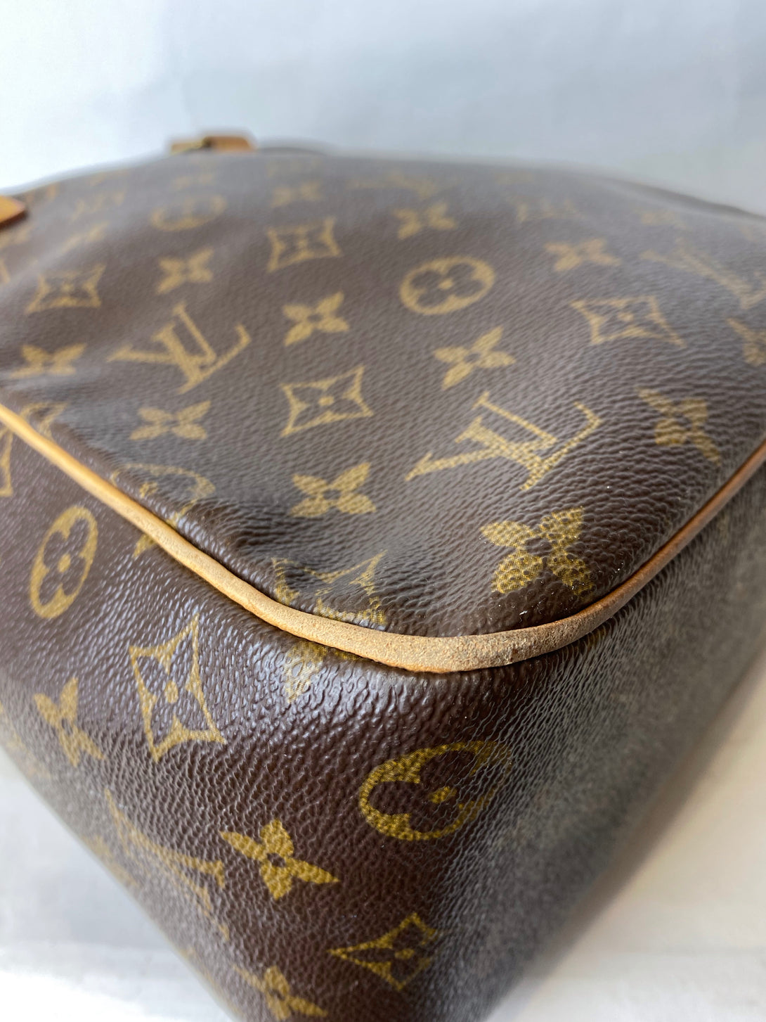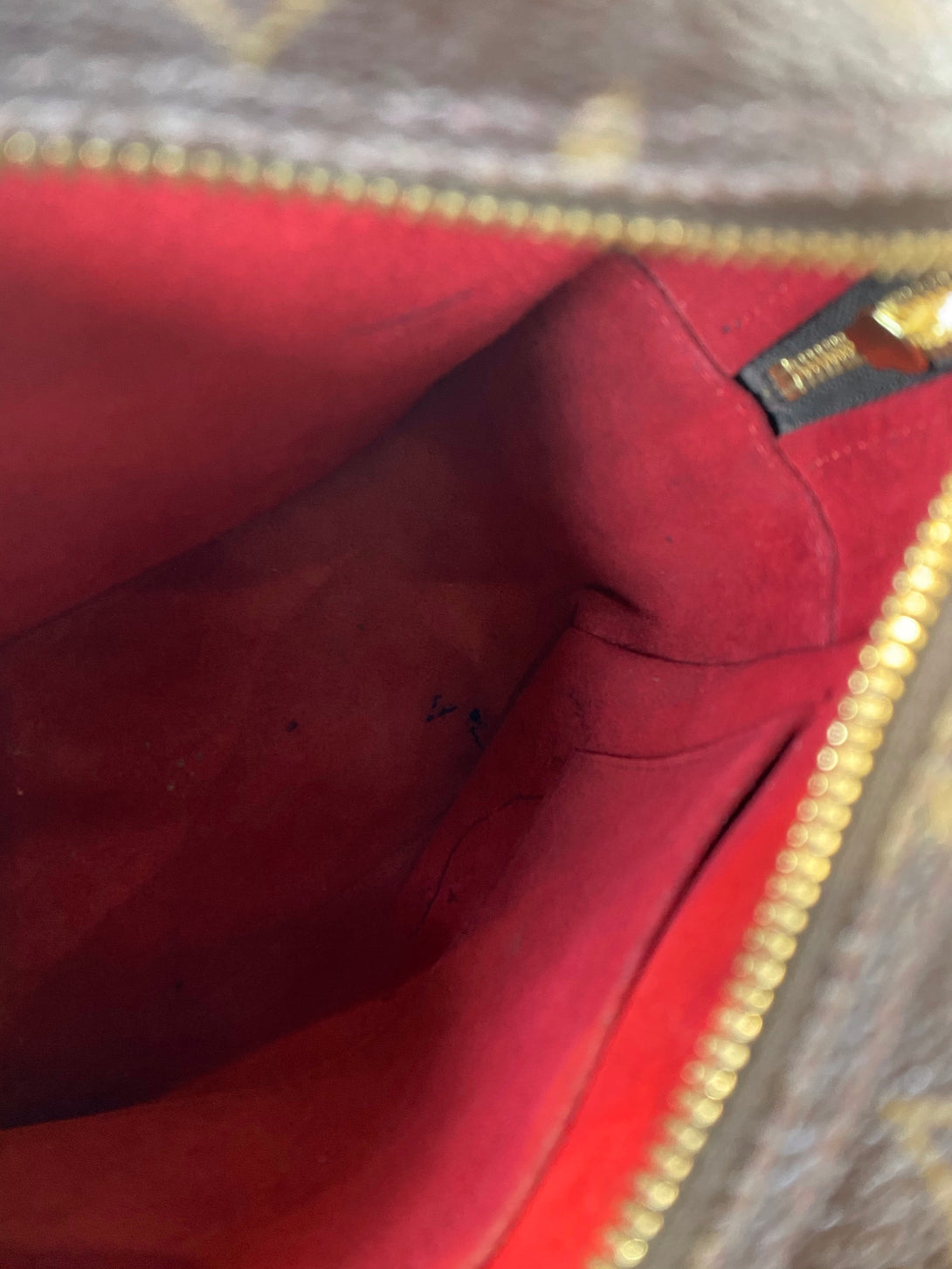 Fair: Very prominent wear, may have holes on corners, severe scuffs, piping of bag showing and pen marks to exterior. Interior may have pen or make up marks.