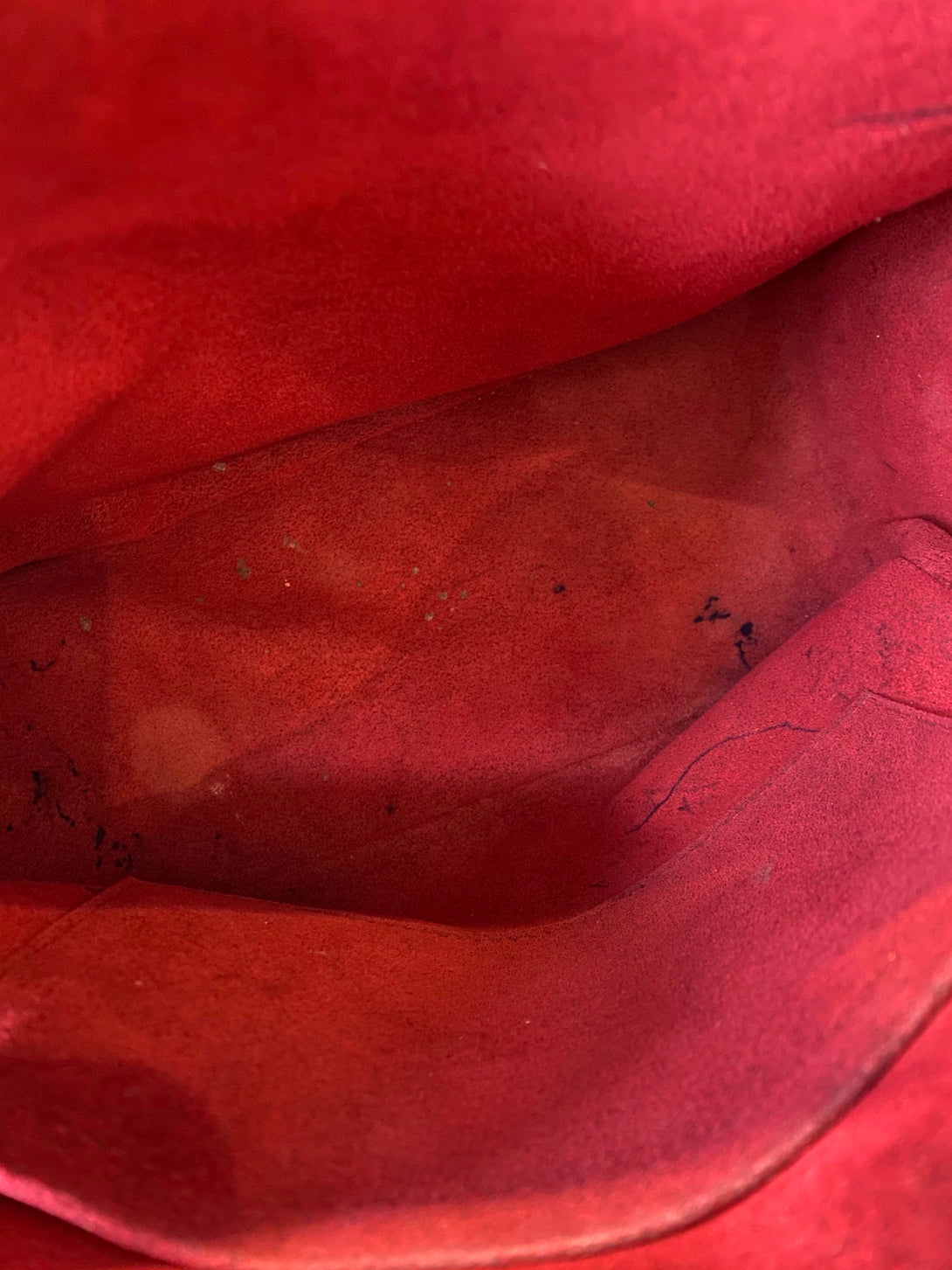Good: Items show more prominent wear such as noticeable discoloration, stains and snags to fabric. May have worn corners and handles, tarnishing to hardware and creasing to leather. Pen or make up marks may be visible in the interior of the bag.