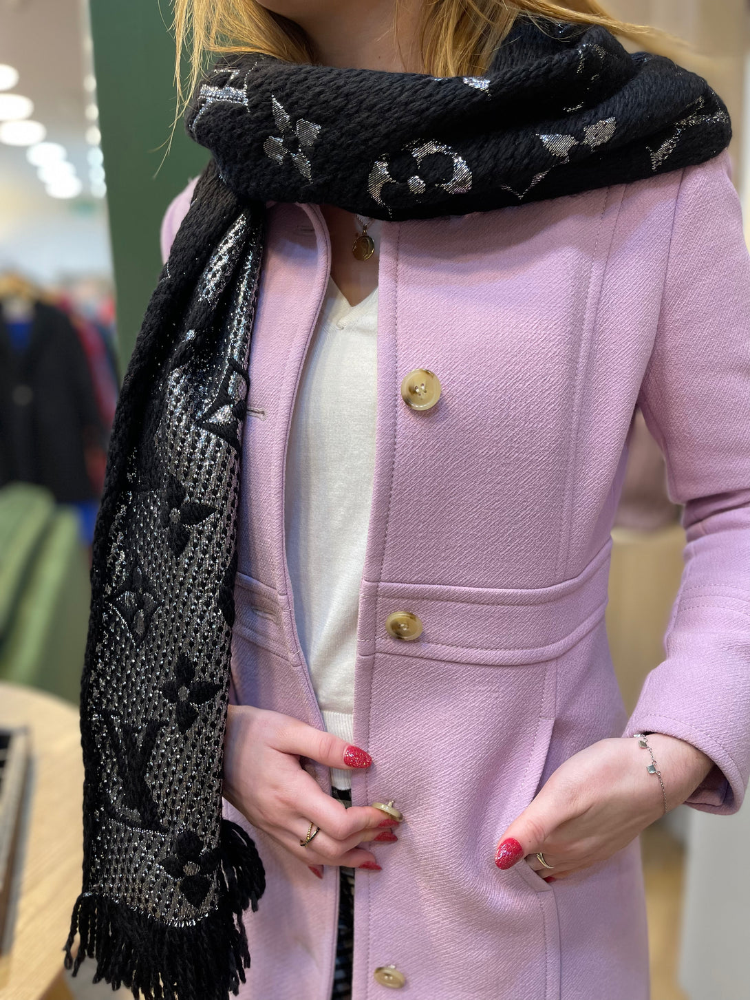 Louis Vuitton Monogram Black / Silver Metallic Logo Scarf
