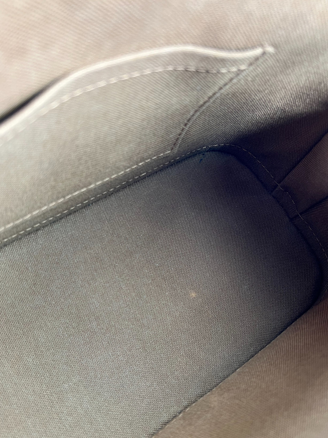 Good: Items show more prominent wear such as noticeable discoloration, stains and snags to fabric. May have worn corners and handles, tarnishing to hardware and creasing to leather. Pen or make up marks may be visible in the interior of the bag.