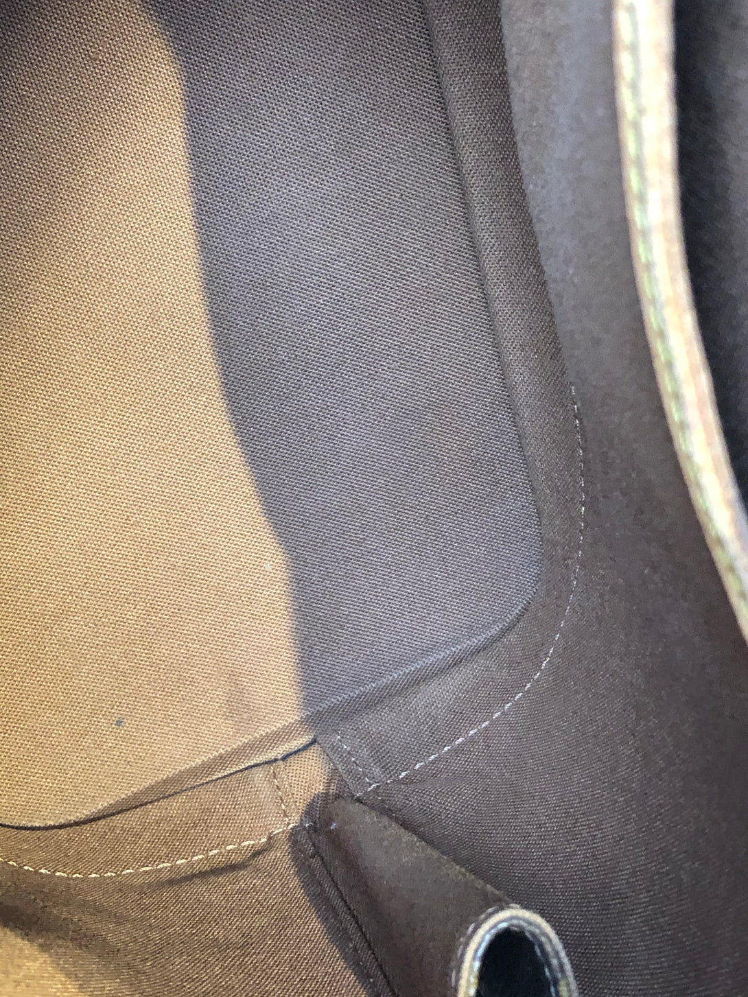 Good: Items show more prominent wear such as noticeable discoloration, stains and snags to fabric. May have worn corners and handles, tarnishing to hardware and creasing to leather. Pen or make up marks may be visible in the interior of the bag.