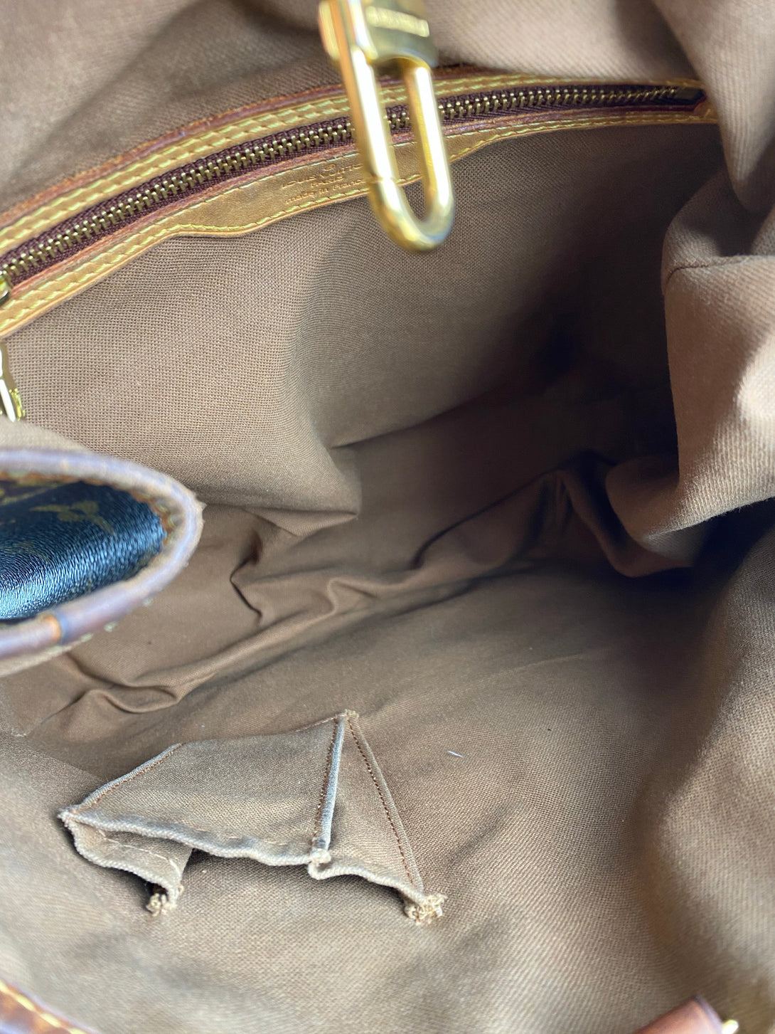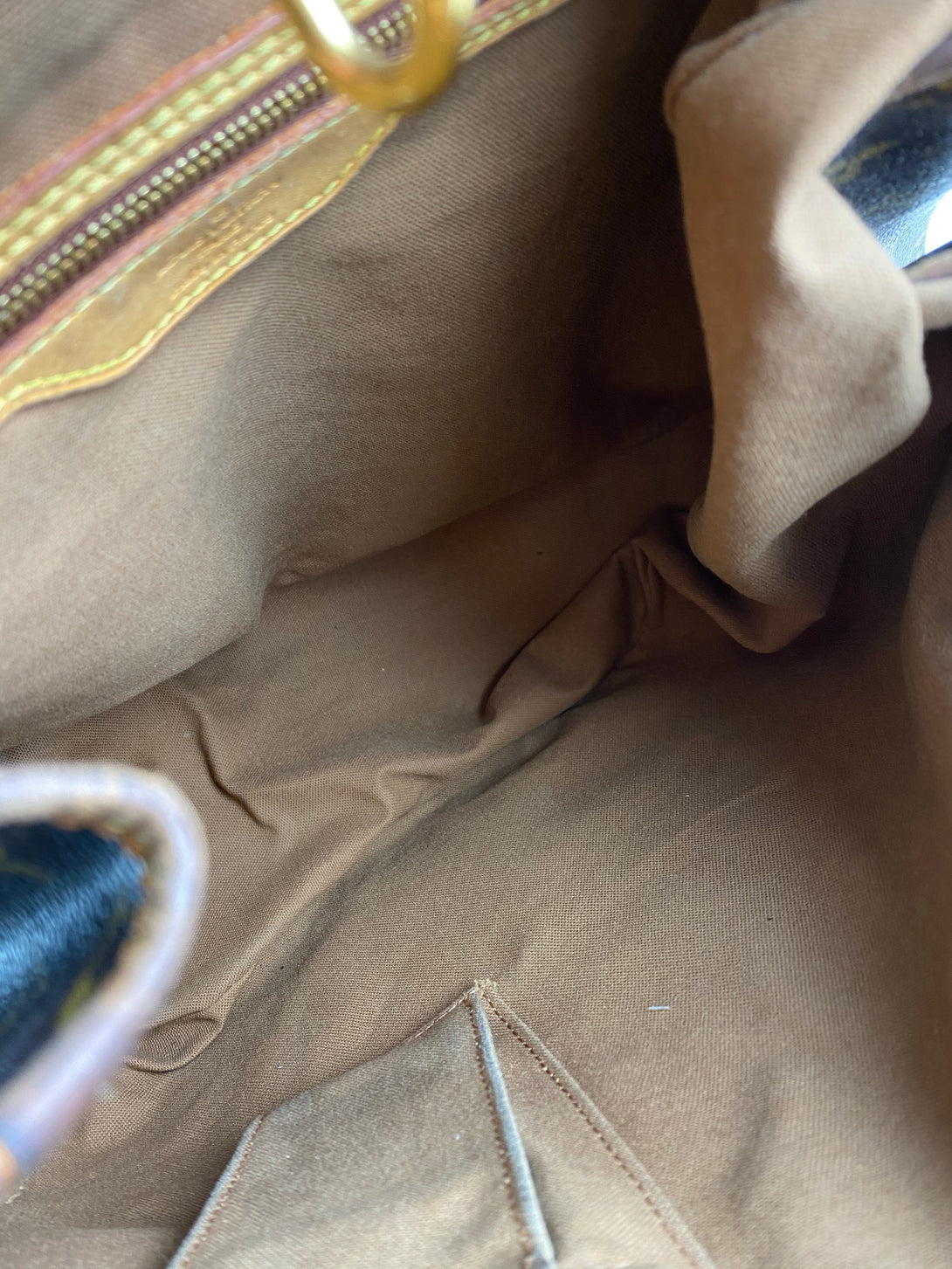 Good: Items show more prominent wear such as noticeable discoloration, stains and snags to fabric. May have worn corners and handles, tarnishing to hardware and creasing to leather. Pen or make up marks may be visible in the interior of the bag.