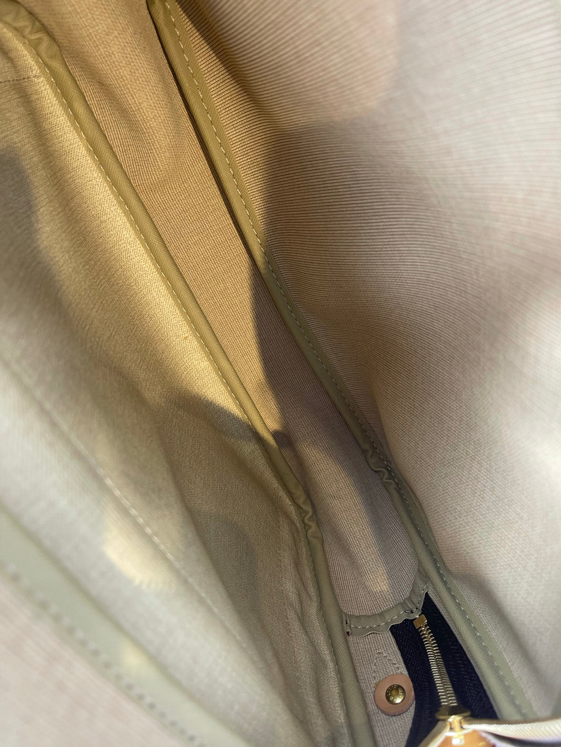 Good: Items show more prominent wear such as noticeable discoloration, stains and snags to fabric. May have worn corners and handles, tarnishing to hardware and creasing to leather. Pen or make up marks may be visible in the interior of the bag.