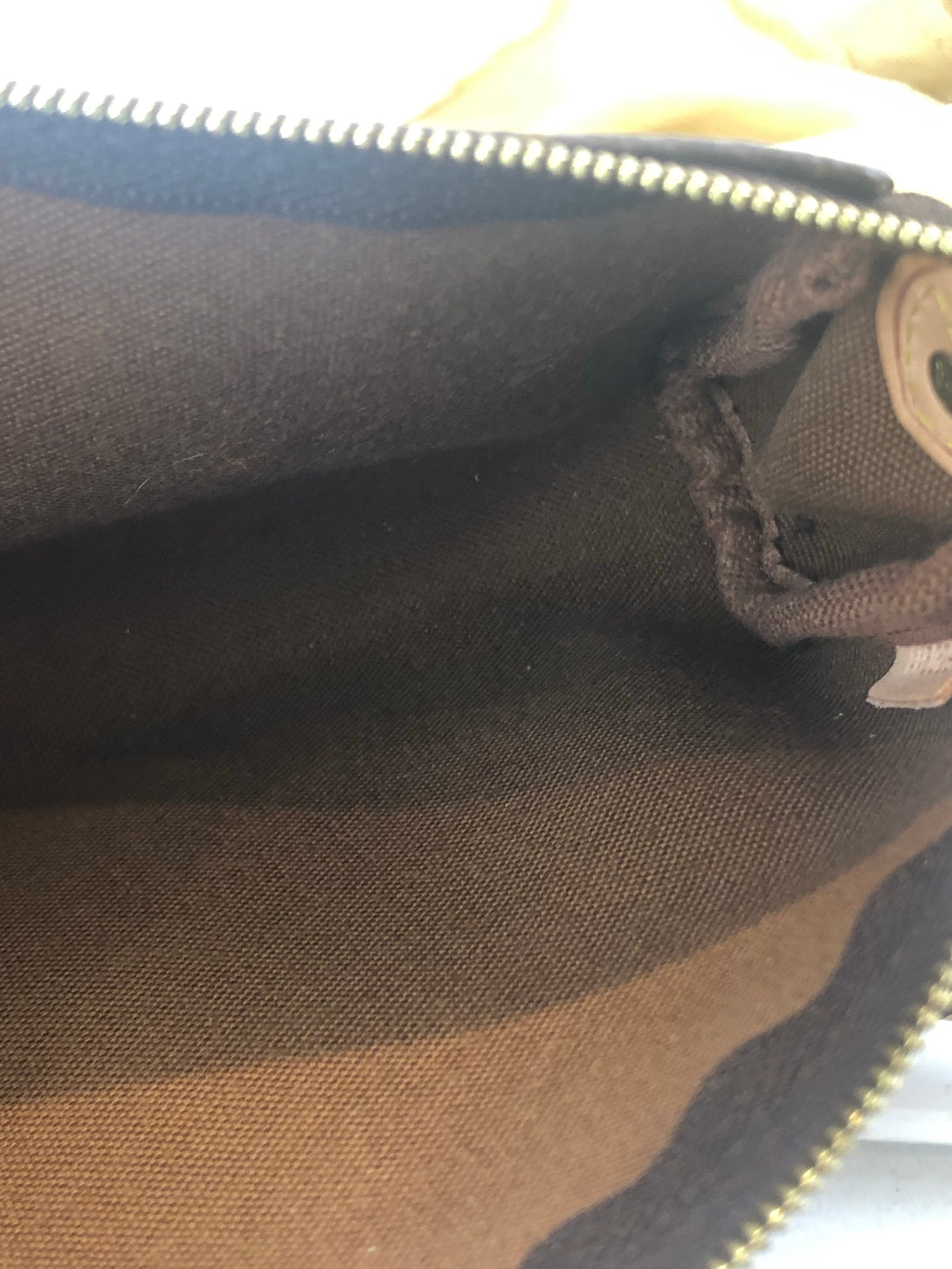 Good: Items show more prominent wear such as noticeable discoloration, stains and snags to fabric. May have worn corners and handles, tarnishing to hardware and creasing to leather. Pen or make up marks may be visible in the interior of the bag.