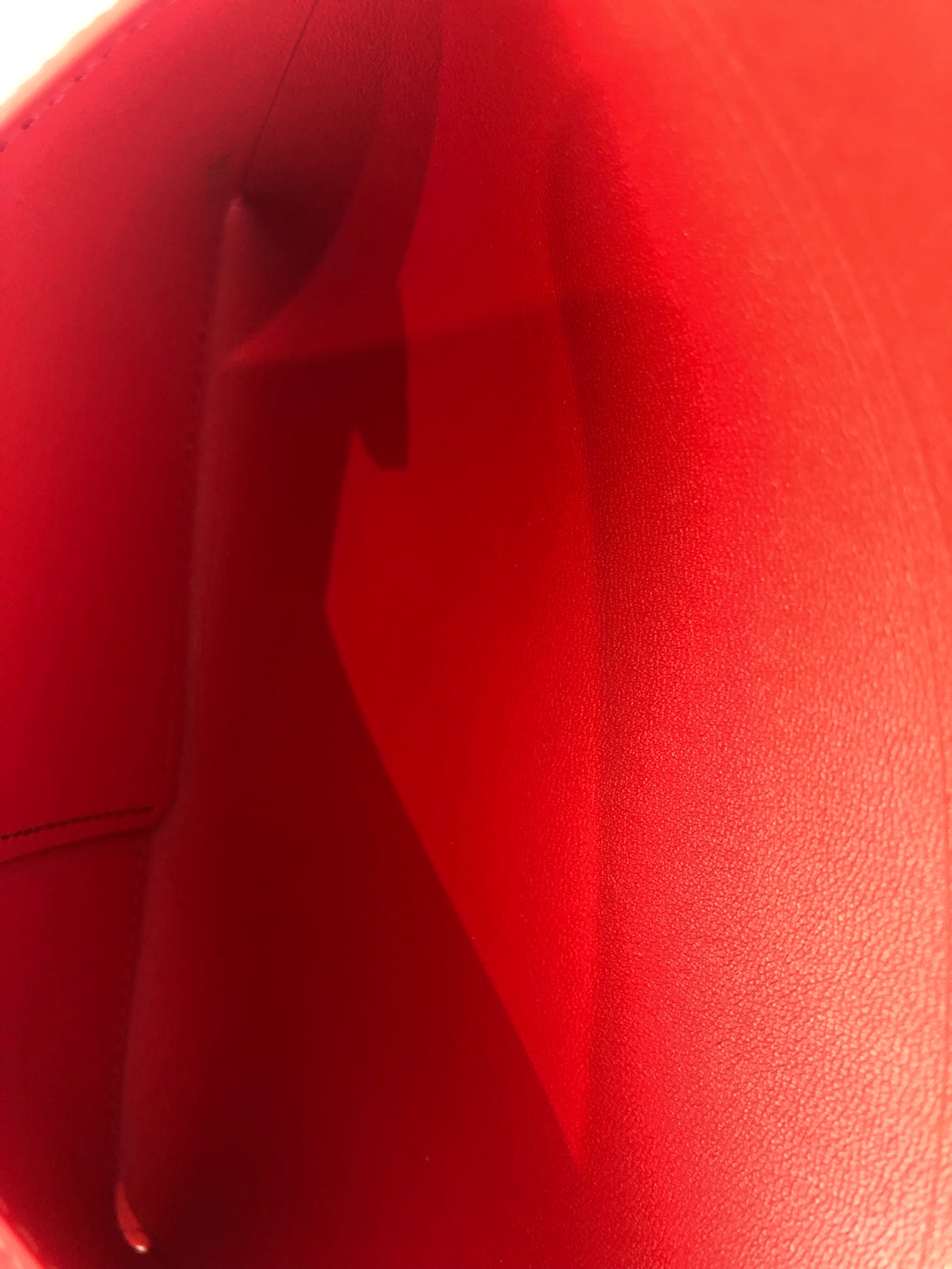 Good: Items show more prominent wear such as noticeable discoloration, stains and snags to fabric. May have worn corners and handles, tarnishing to hardware and creasing to leather. Pen or make up marks may be visible in the interior of the bag.