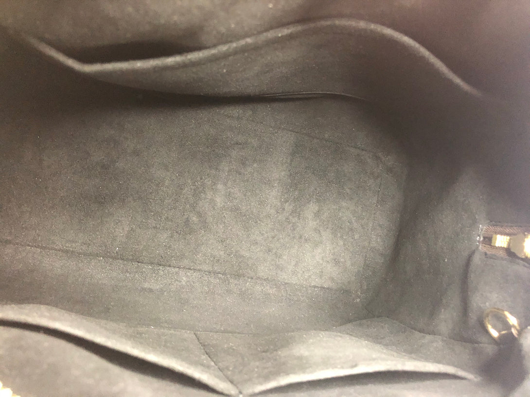 Good: Items show more prominent wear such as noticeable discoloration, stains and snags to fabric. May have worn corners and handles, tarnishing to hardware and creasing to leather. Pen or make up marks may be visible in the interior of the bag.