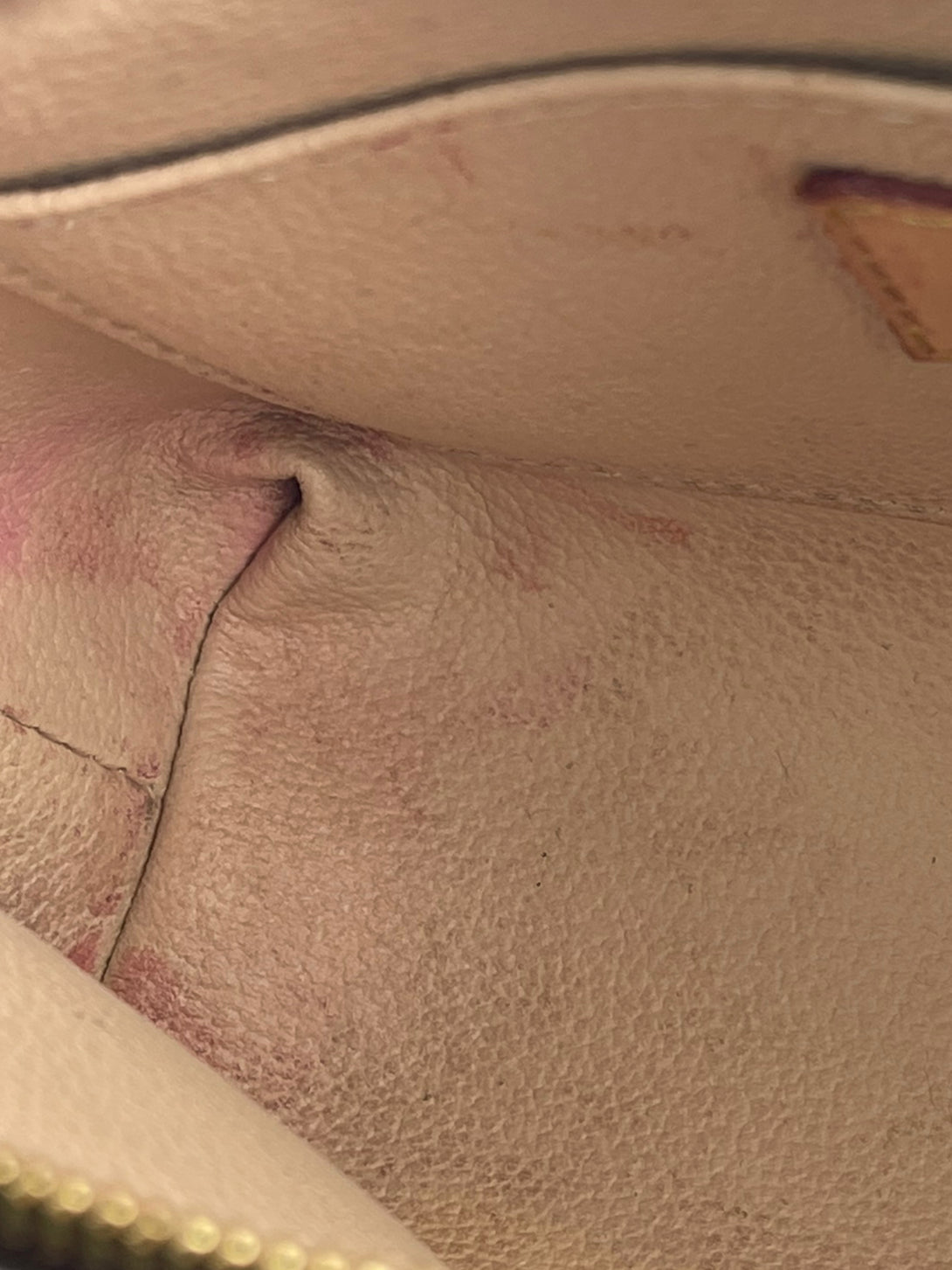 Fair: Very prominent wear, may have holes on corners, severe scuffs, piping of bag showing and pen marks to exterior. Interior may have pen or make up marks.