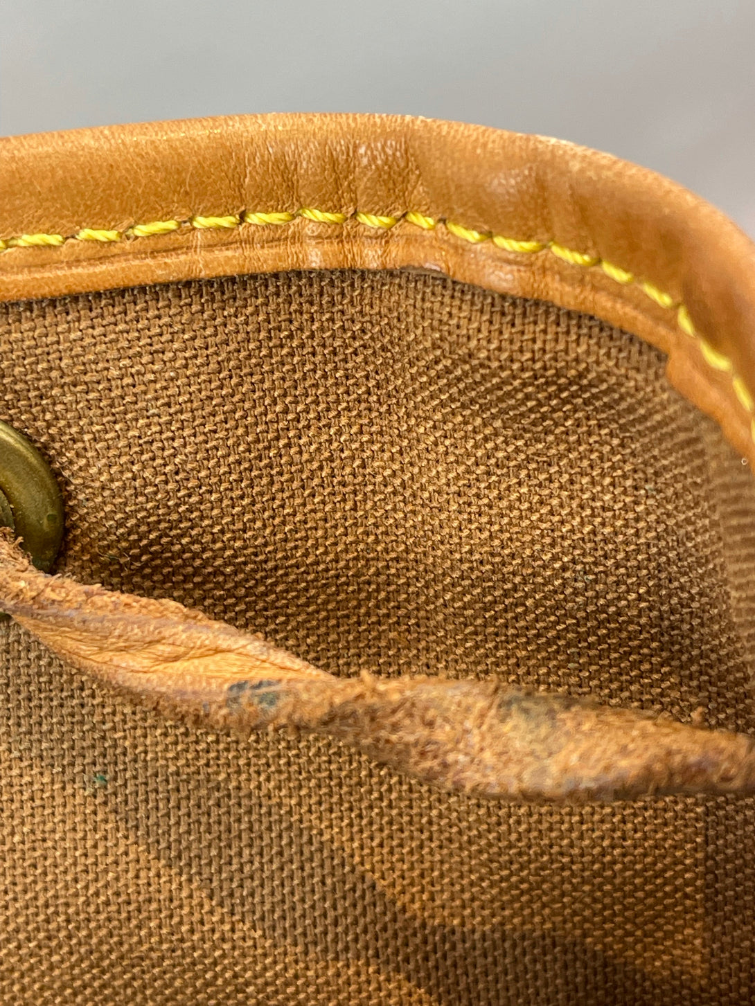 Good: Items show more prominent wear such as noticeable discoloration, stains and snags to fabric. May have worn corners and handles, tarnishing to hardware and creasing to leather. Pen or make up marks may be visible in the interior of the bag.