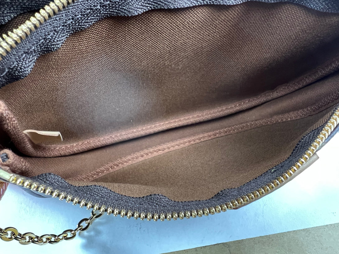 Fair: Very prominent wear, may have holes on corners, severe scuffs, piping of bag showing and pen marks to exterior. Interior may have pen or make up marks.