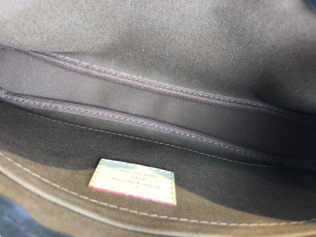 Good: Items show more prominent wear such as noticeable discoloration, stains and snags to fabric. May have worn corners and handles, tarnishing to hardware and creasing to leather. Pen or make up marks may be visible in the interior of the bag.