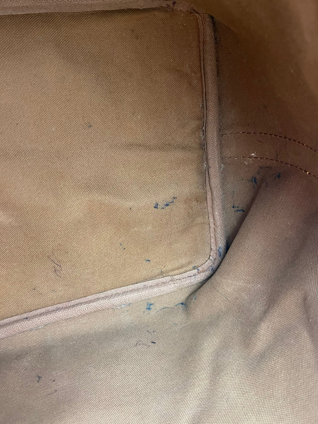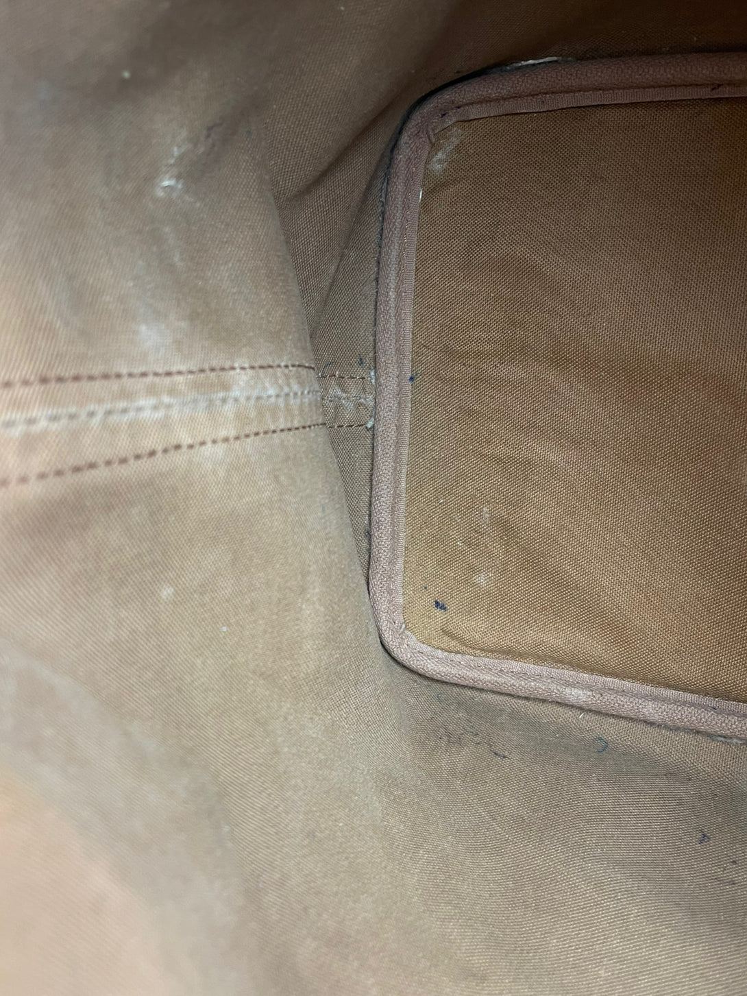 Good: Items show more prominent wear such as noticeable discoloration, stains and snags to fabric. May have worn corners and handles, tarnishing to hardware and creasing to leather. Pen or make up marks may be visible in the interior of the bag.