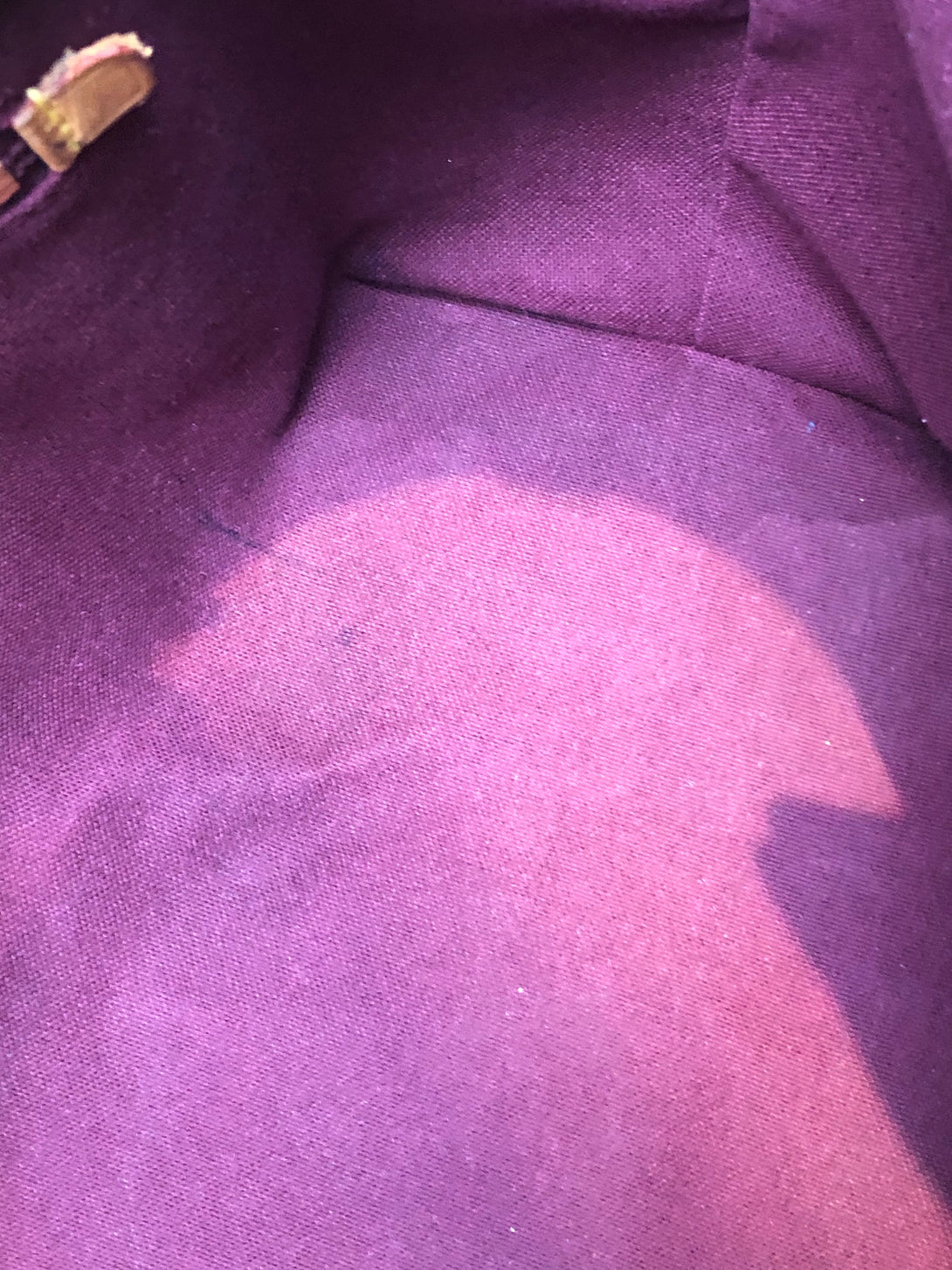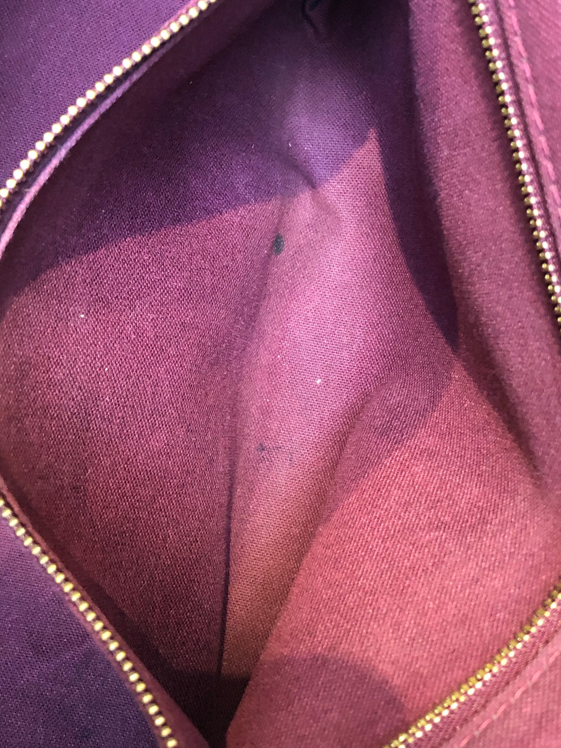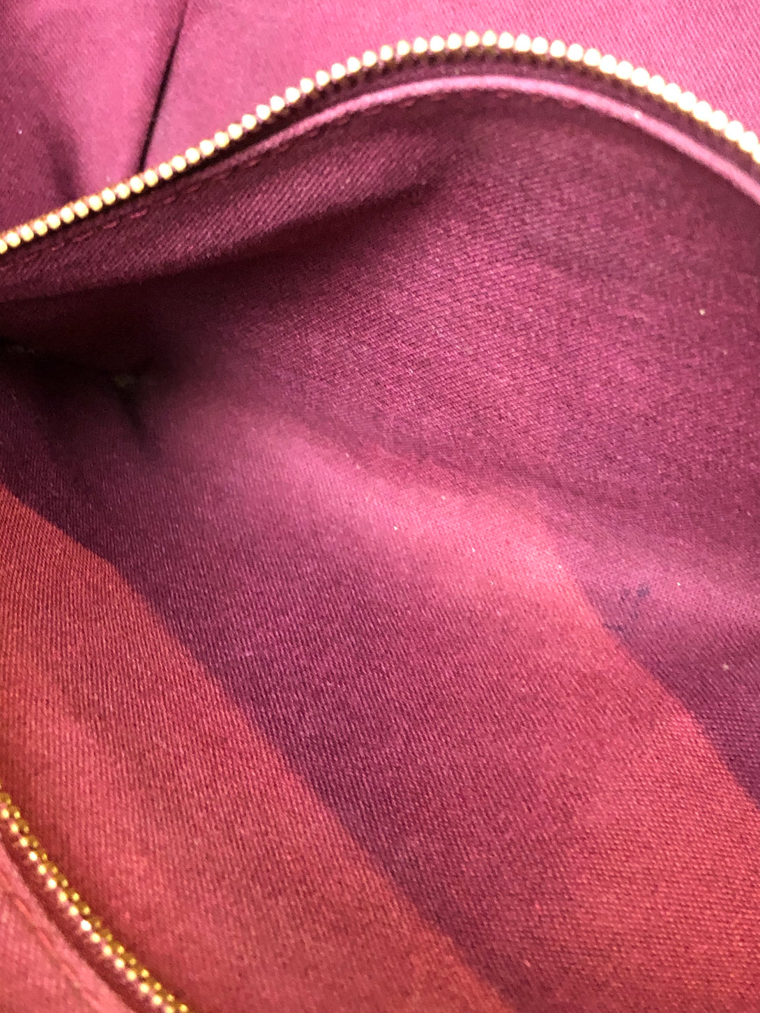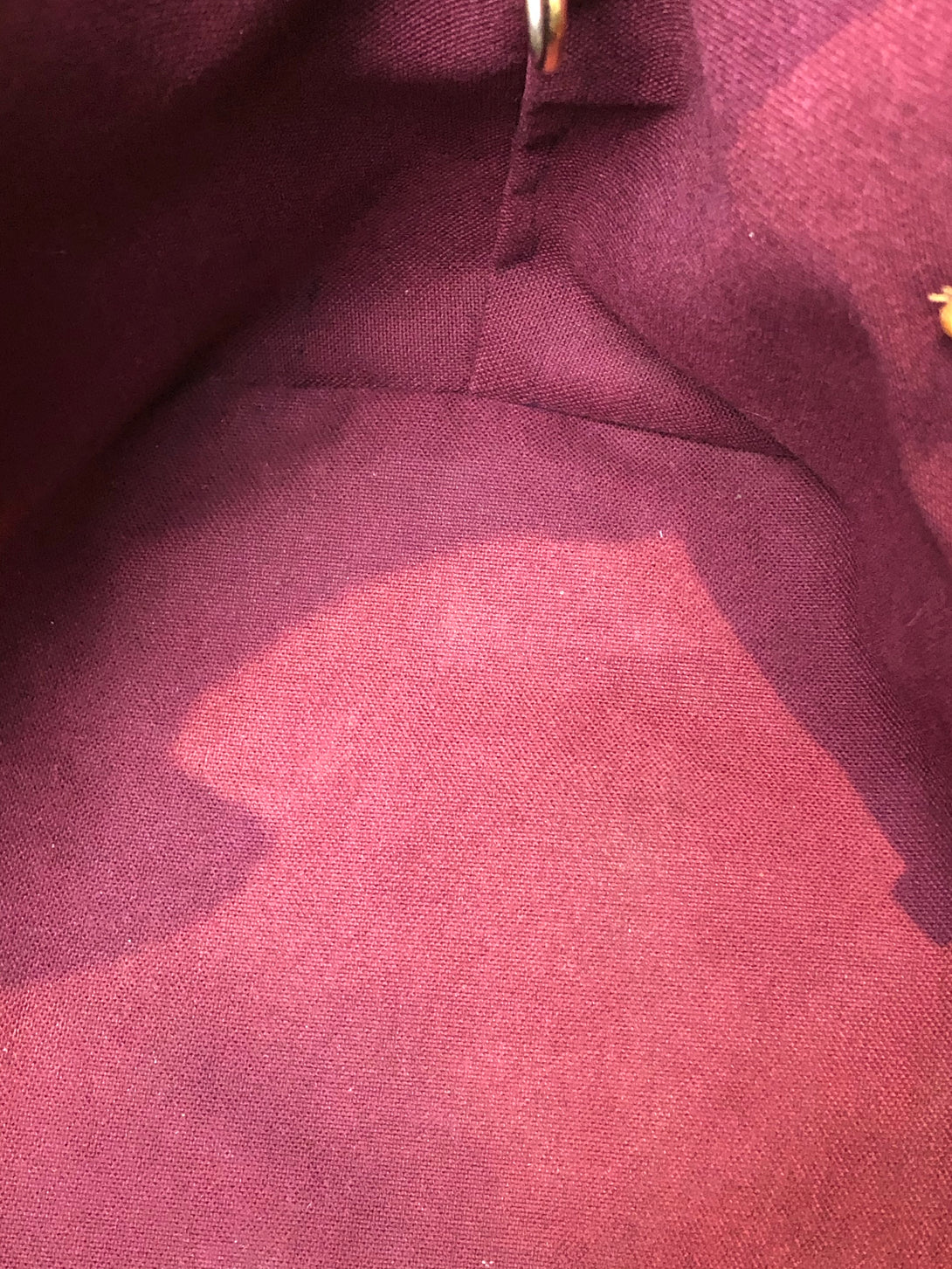 Good: Items show more prominent wear such as noticeable discoloration, stains and snags to fabric. May have worn corners and handles, tarnishing to hardware and creasing to leather. Pen or make up marks may be visible in the interior of the bag.